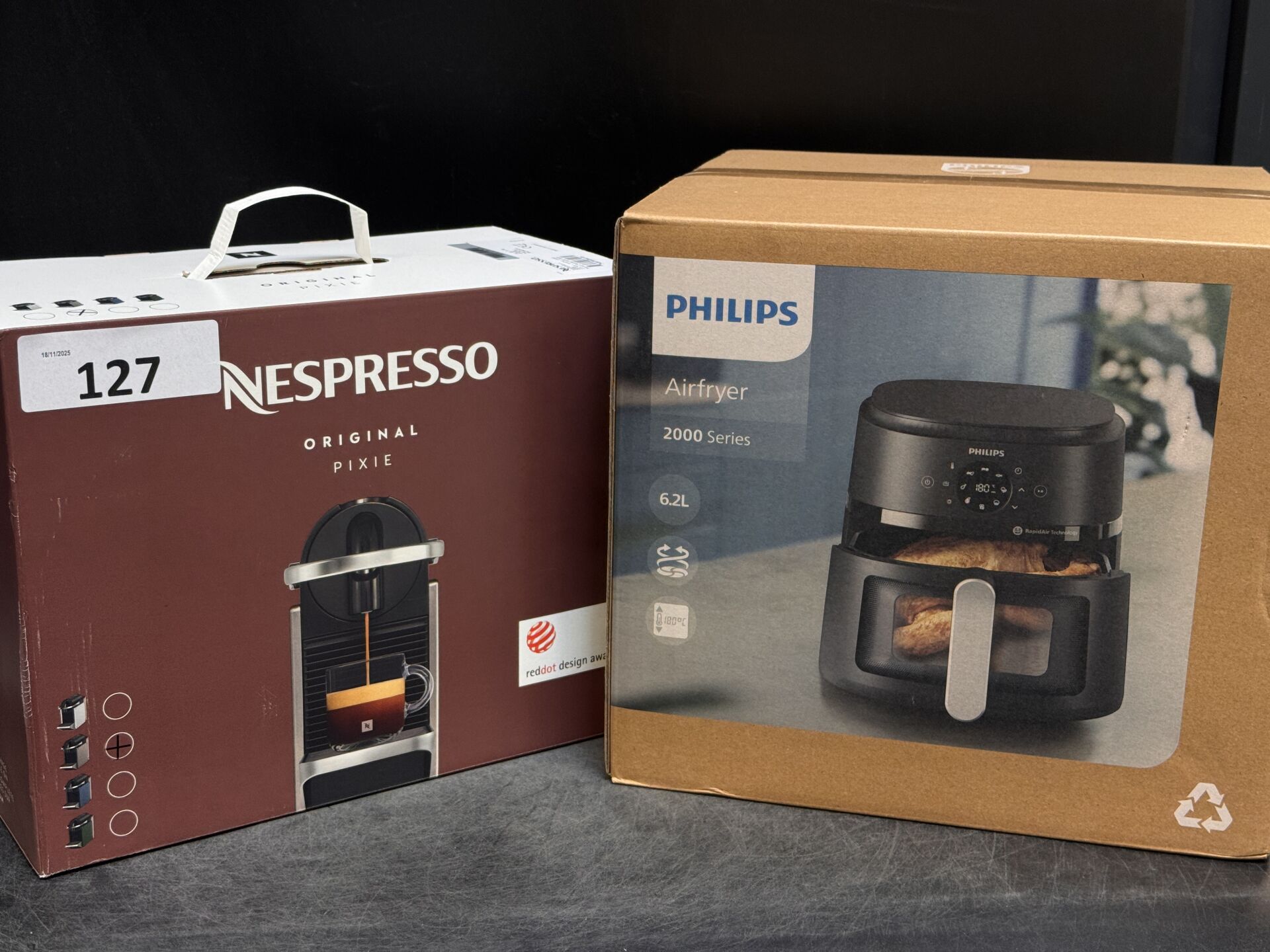 MACHINE A CAFE NESPRESSO PIXIE + AIRFRYER PHILIPS NA 231 (expédition sur devis) Lot issu de colis non réclamés : état de fonctionnement non garanti.