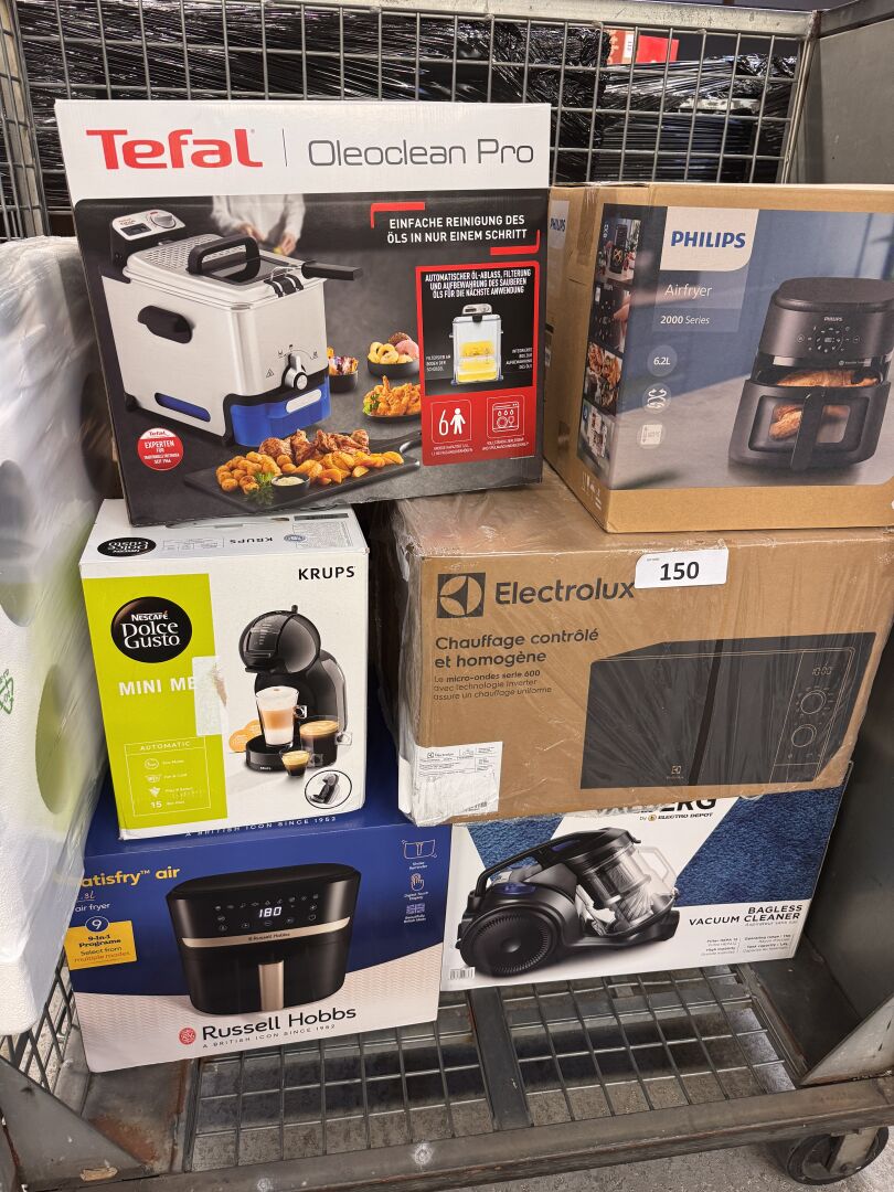 LOT DE PETITS ELECTROMENAGERS DONT MACHINE A CAFE, ASPIRATEUR, AIRFRYER (expédition sur devis) Lot issu de colis non réclamés : état de fonctionnement non garanti.