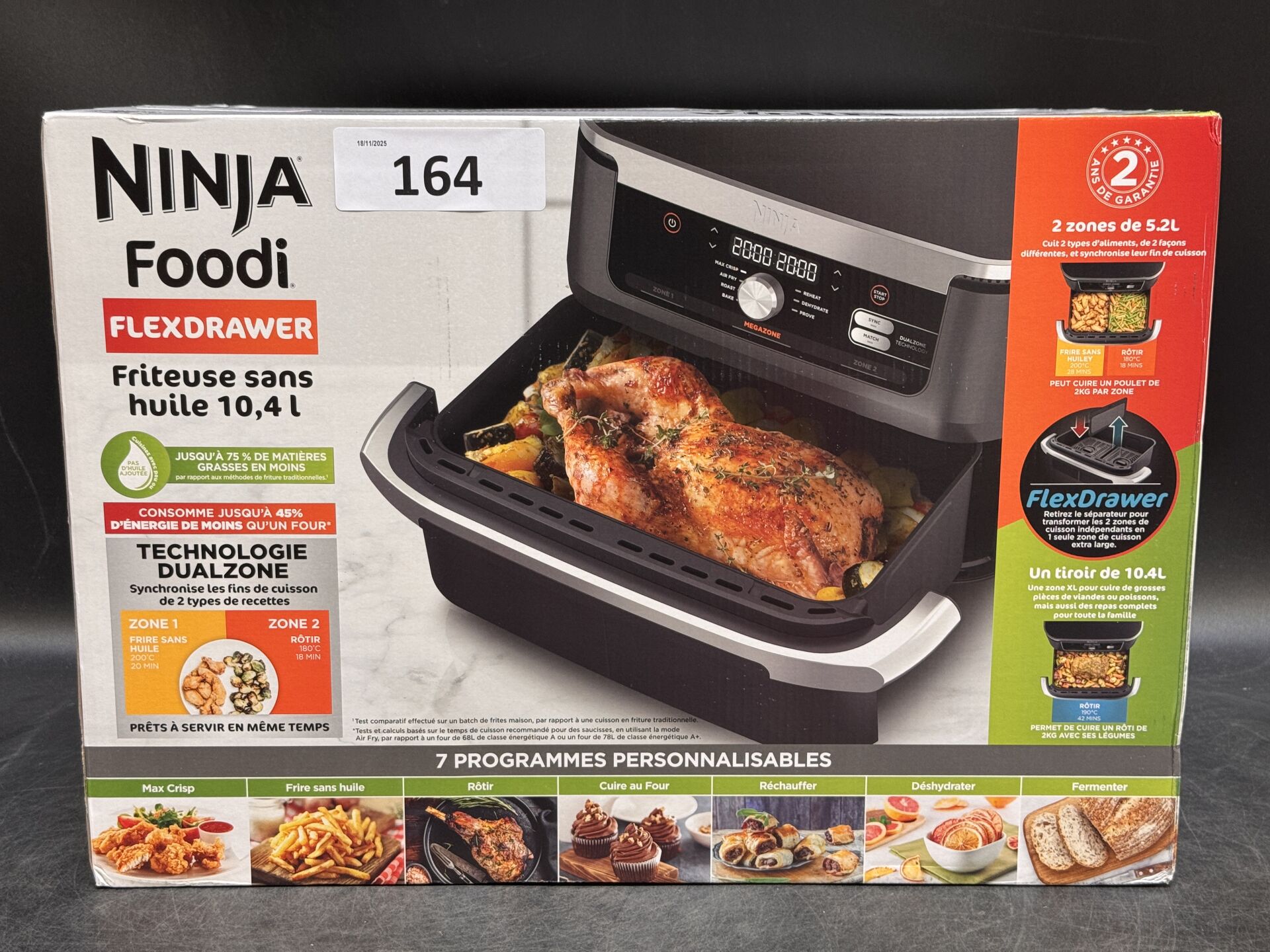 AIRFRYER NINJA FOODI FLEXDRAWER (avec scellés) EXPEDITION POSSIBLE (ce lot chez vous en France métropolitaine pour 43,45€) Lot issu de colis non réclamés : état de fonctionnement non garanti.