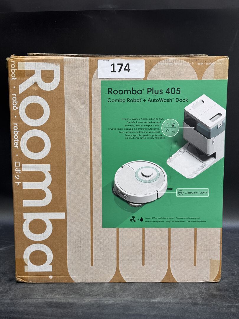 ASPIRATEUR ROBOT ROOMBA PLUS 405 COMBO EXPEDITION POSSIBLE (ce lot chez vous en France métropolitaine pour 46,48€) Lot issu de colis non réclamés : état de fonctionnement non garanti.
