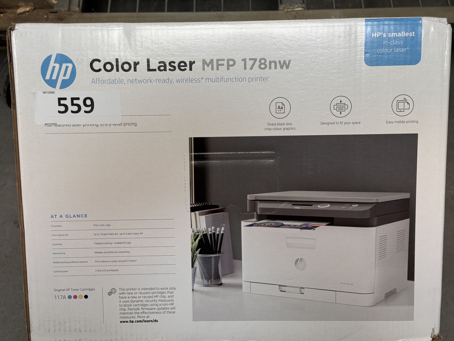 IMPRIMANTE HP COLOR LASER MFP 178NW 193015507258 (avec scellés) (expédition sur devis) Lot issu de colis non réclamés : état de fonctionnement non garanti.