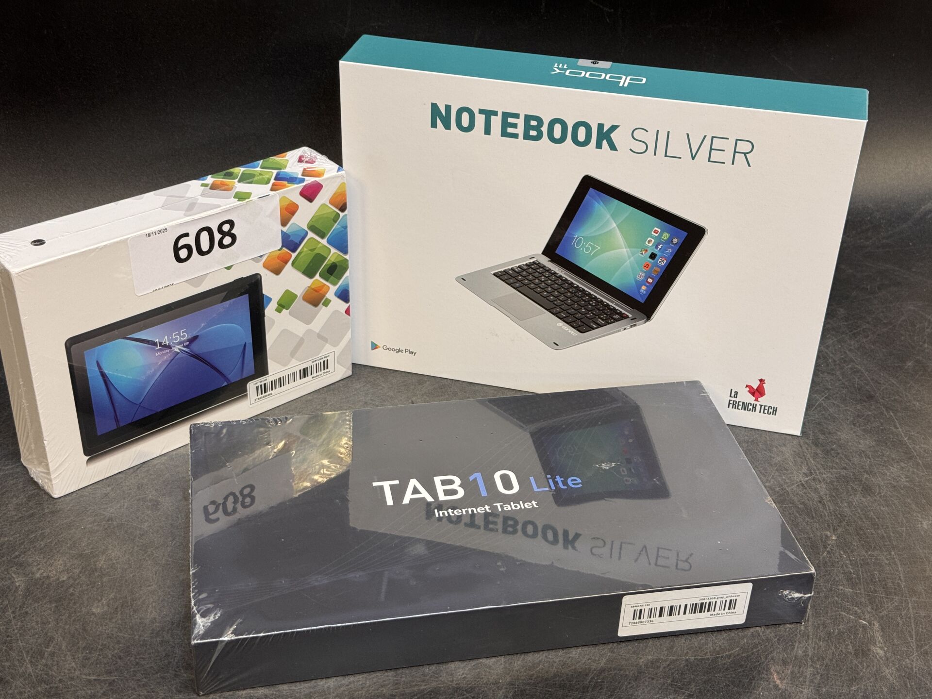 3 TABLETTES & NOTEBOOK DONT DANEW DBOOK 111 EXPEDITION POSSIBLE (ce lot chez vous en France métropolitaine pour 30,64€) Lot issu de colis non réclamés : état de fonctionnement non garanti.
