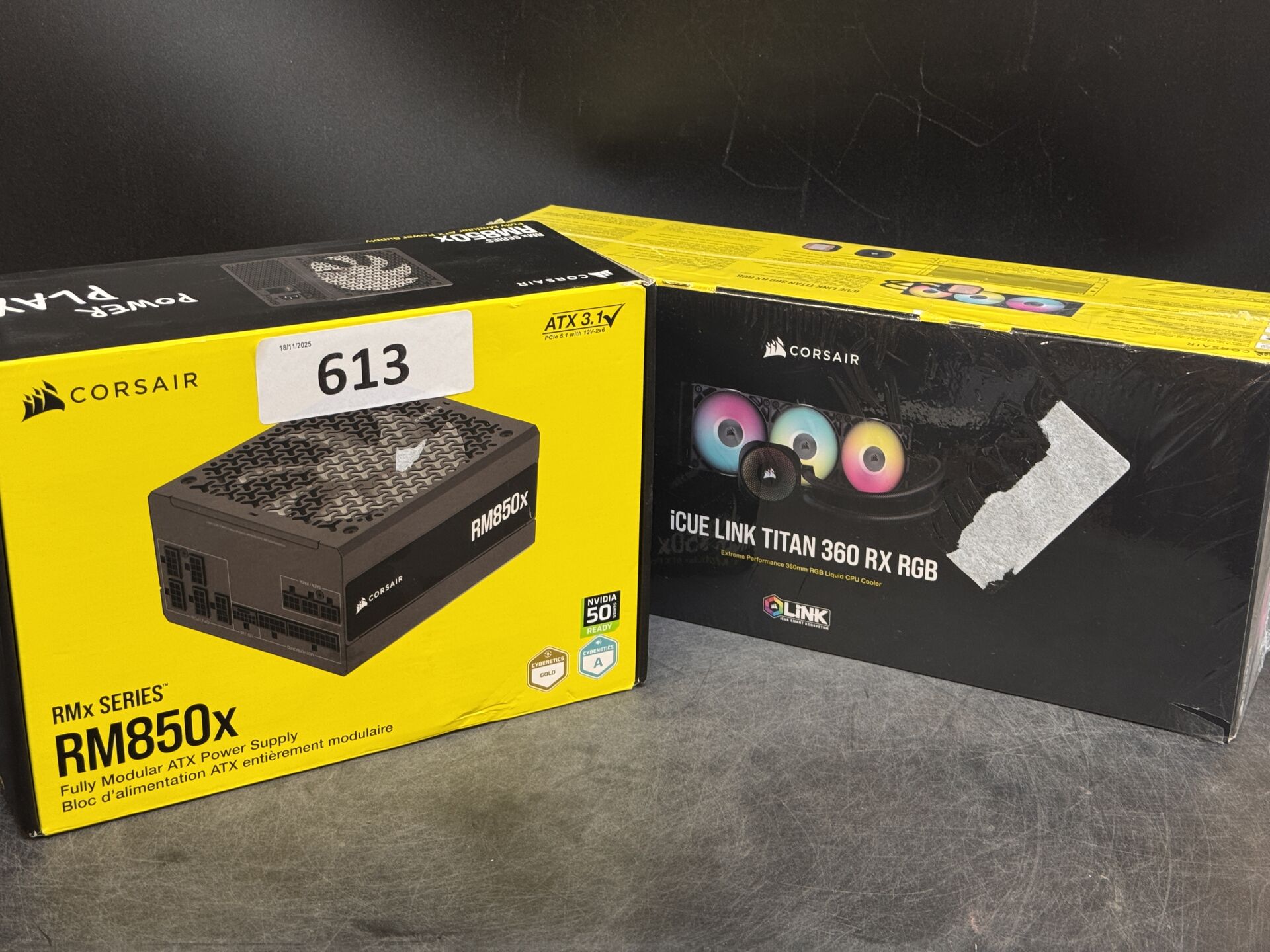 ALIMENTATION CORSAIR RM850X + KIT WATERCOOLING ICUE LINK TITAN 360 RX RGB EXPEDITION POSSIBLE (ce lot chez vous en France métropolitaine pour 34,93€) Lot issu de colis non réclamés : état de fonctionnement non garanti.