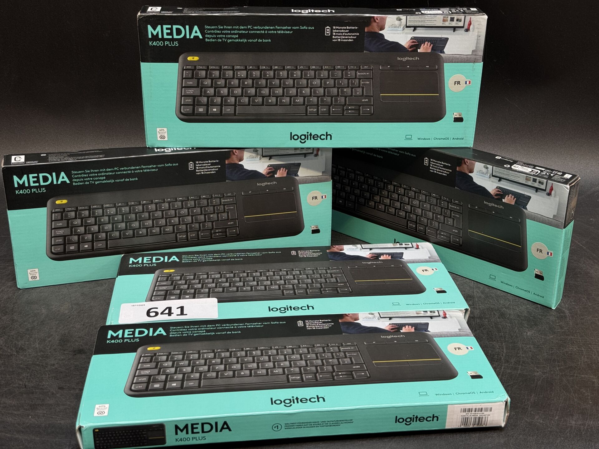 5 CLAVIERS LOGITECH MEDIA K400 PLUS (fr avec scellés) EXPEDITION POSSIBLE (ce lot chez vous en France métropolitaine pour 29,15€) Lot issu de colis non réclamés : état de fonctionnement non garanti.