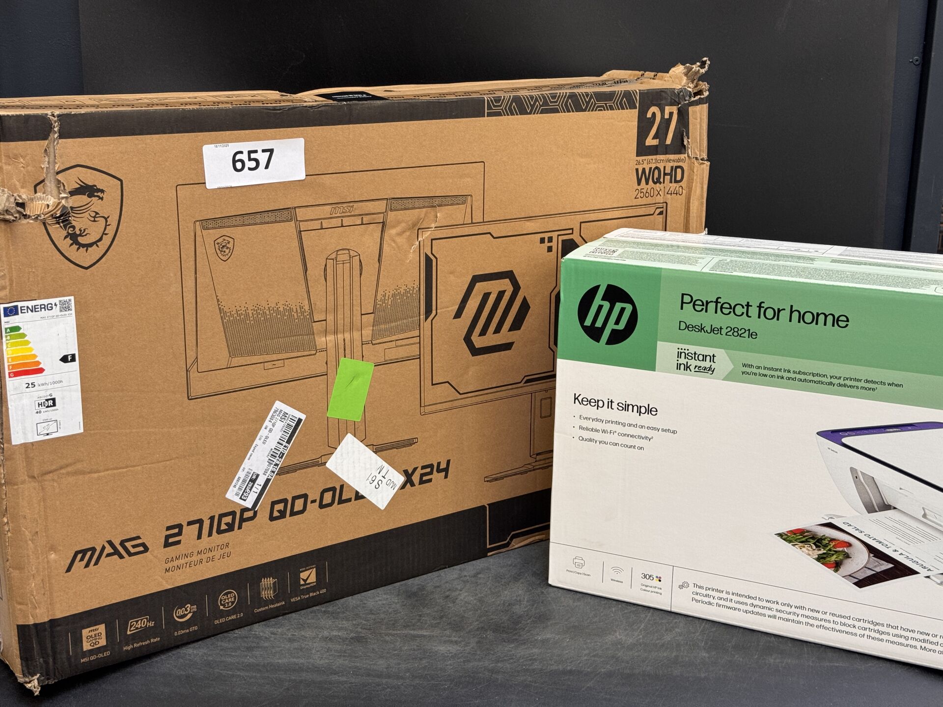 MONITEUR MSI 27" MAG 271QP QD-OLEDX24 (emballage endommagé) + IMPRIMANTE HP 2821E (expédition sur devis) Lot issu de colis non réclamés : état de fonctionnement non garanti.