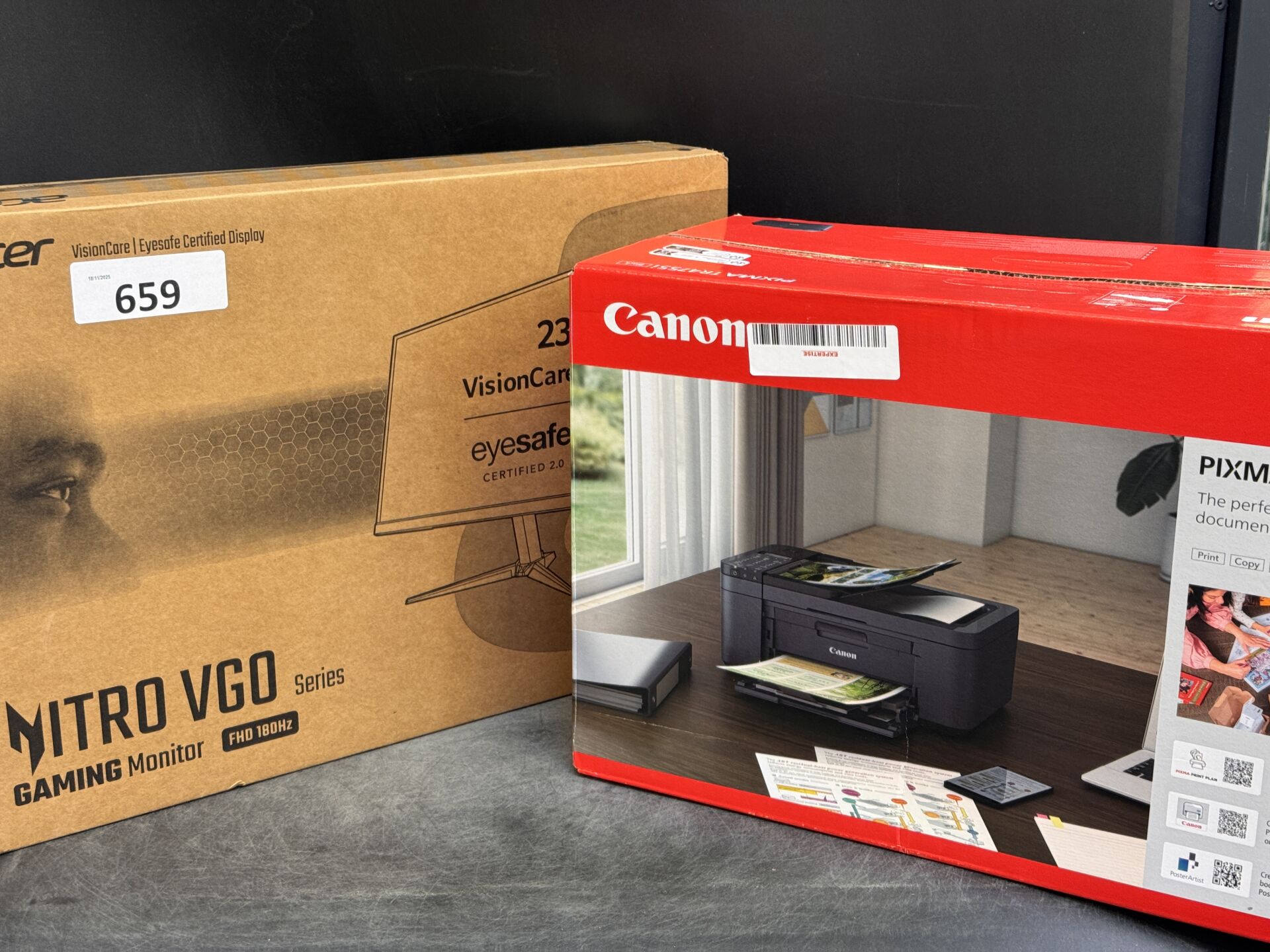 MONITEUR ACER 23,8" NITRO VG240Y M3 (avec scellés) + IMPRIMANTE CANON PIXMA TR4755i (expédition sur devis) Lot issu de colis non réclamés : état de fonctionnement non garanti.