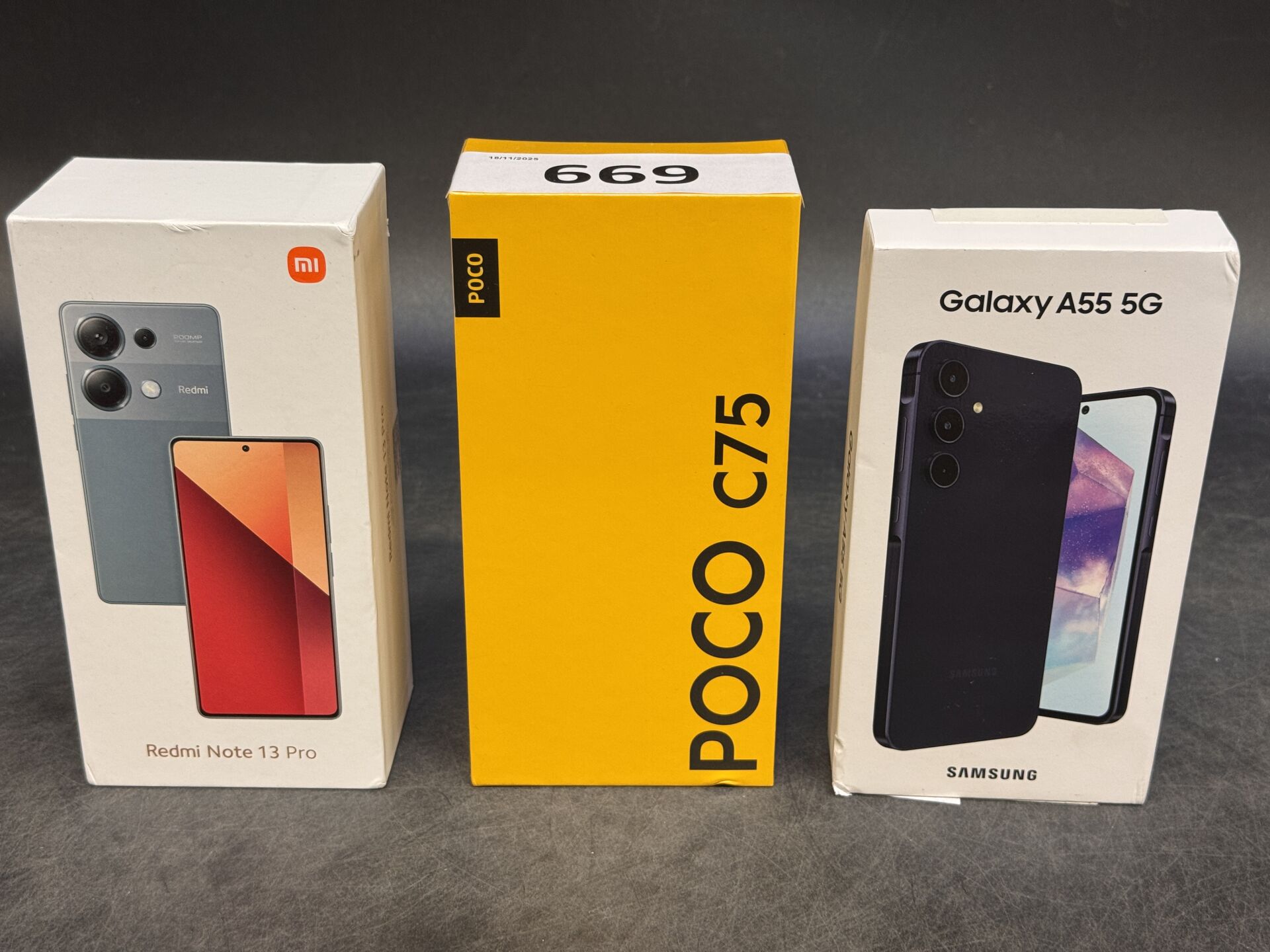 3 TELEPHONES PORTABLES : REDMI NOTE 13 PRO / POCO C75 / SAMSUNG GALAXY A55 5G (avec scellés) EXPEDITION POSSIBLE (ce lot chez vous en France métropolitaine pour 27,45€) Lot issu de colis non réclamés : état de fonctionnement non garanti, pouvant être bloqué)