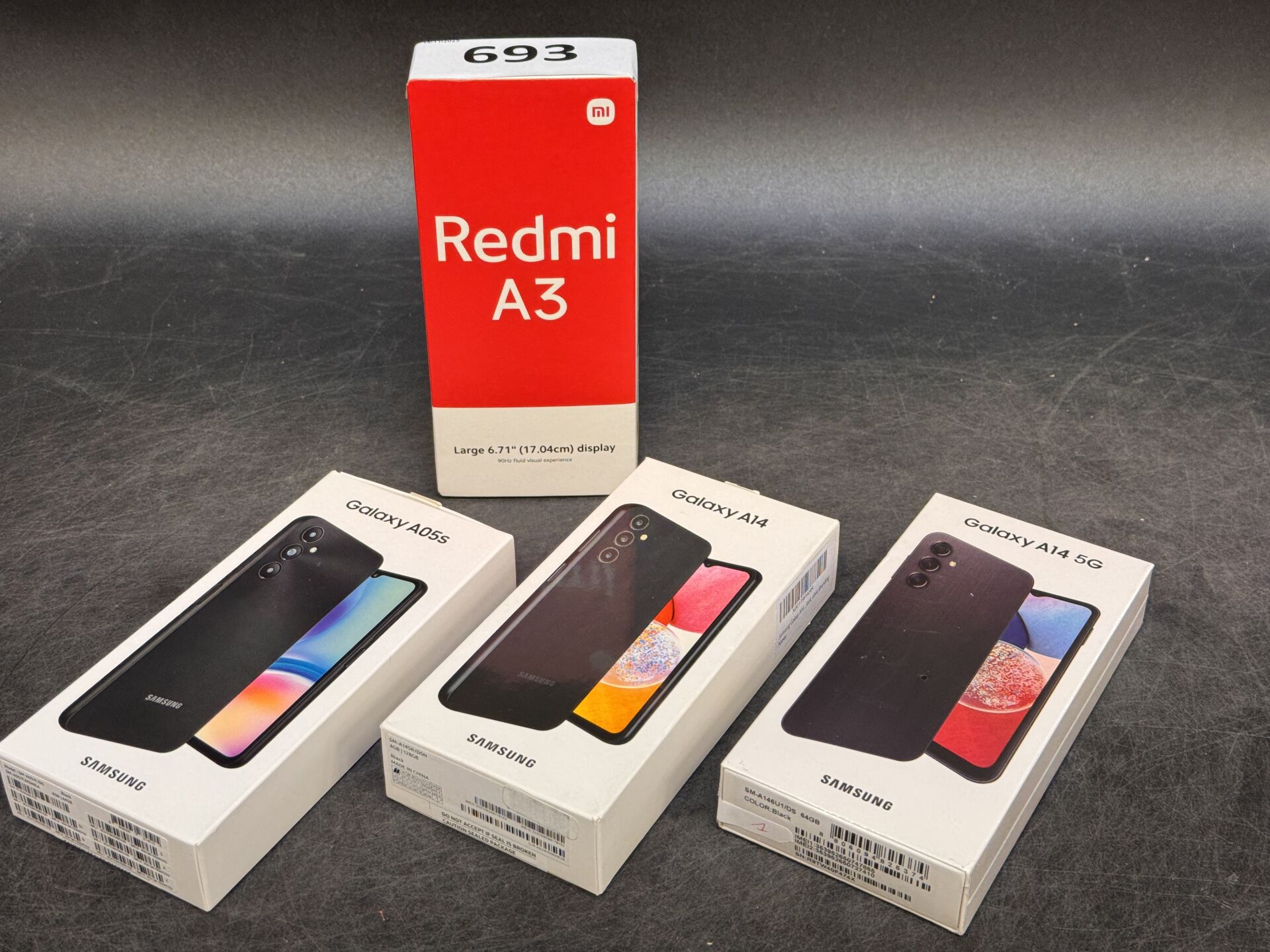 4 TELEPHONES PORTABLES : REDMI A3 / SAMSUNG GALAXY A14 & A05S (avec scellés) EXPEDITION POSSIBLE (ce lot chez vous en France métropolitaine pour 27,45€) Lot issu de colis non réclamés : état de fonctionnement non garanti, pouvant être bloqué)