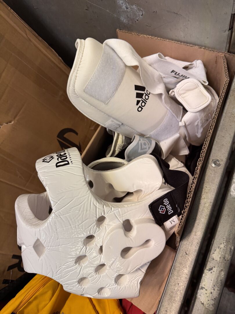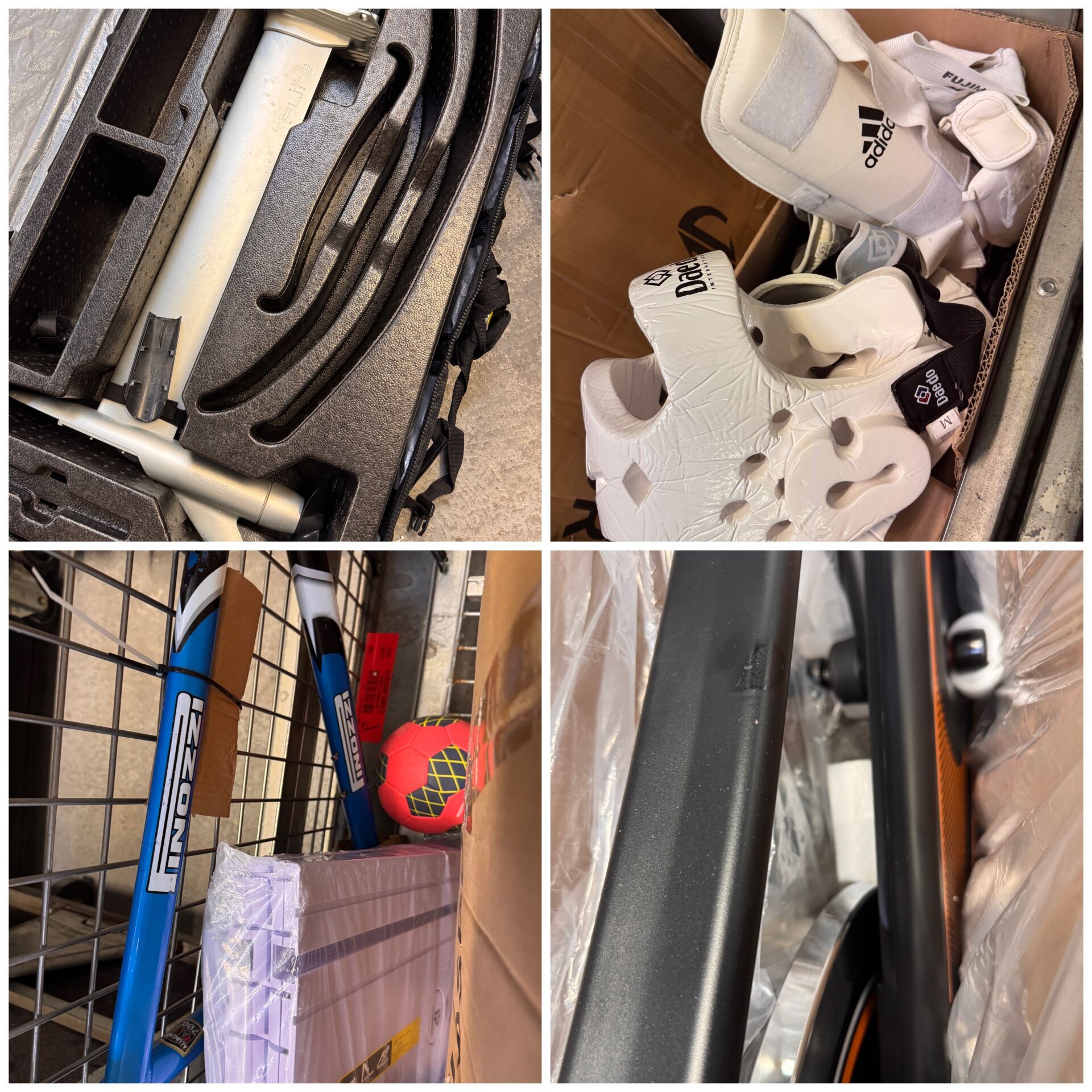 FORT ENSEMBLE D'ARTICLES SPORT & LOISIRS DONT MOTEUR POUR FOIL, PROTECTIONS POUR ARTS MARTIAUX , CADRE VELO, VELO APPARTEMENT (expédition sur devis) (traces d'usage, retour sav, avarie de transport, seconde main, en l'état)