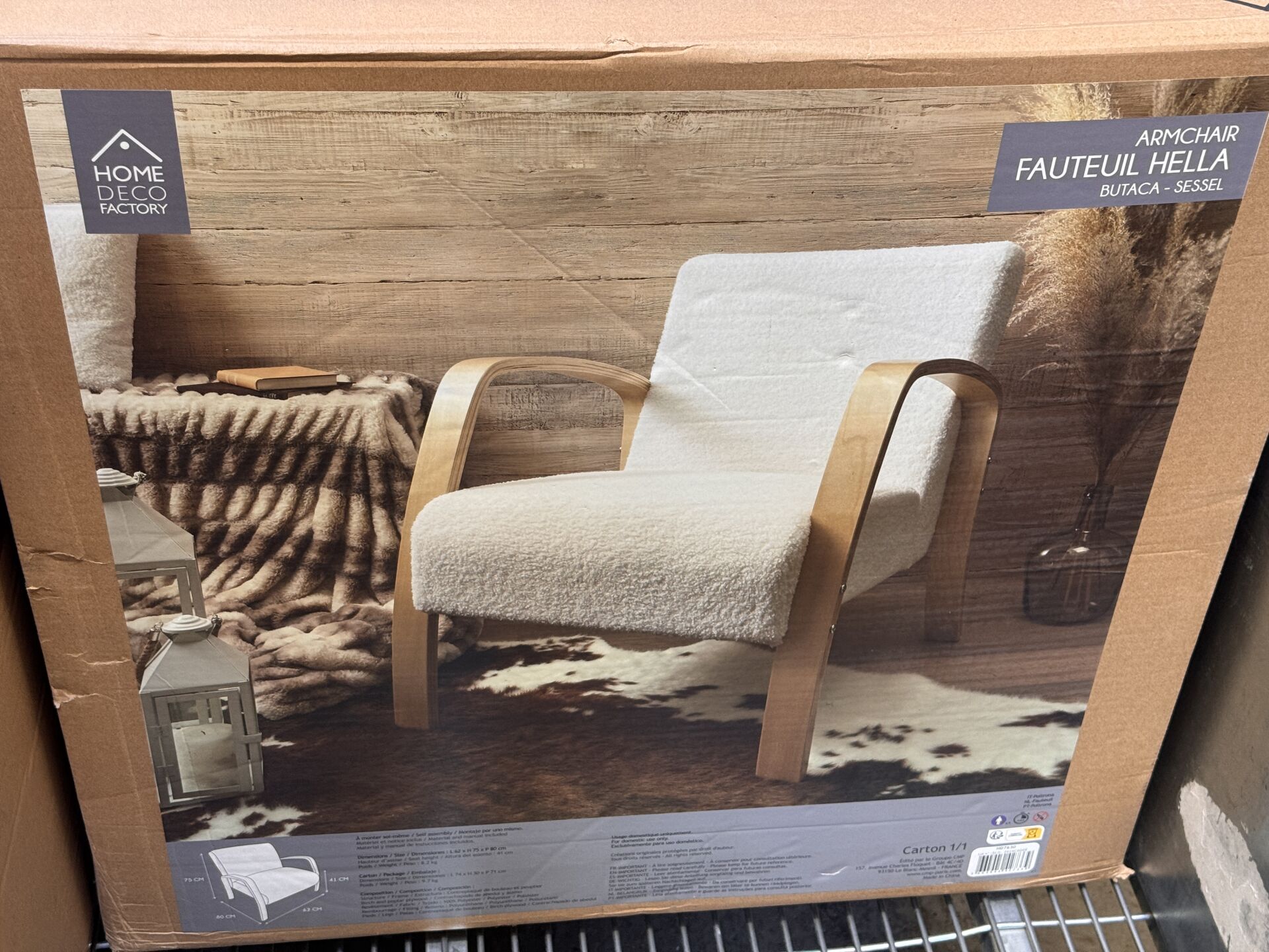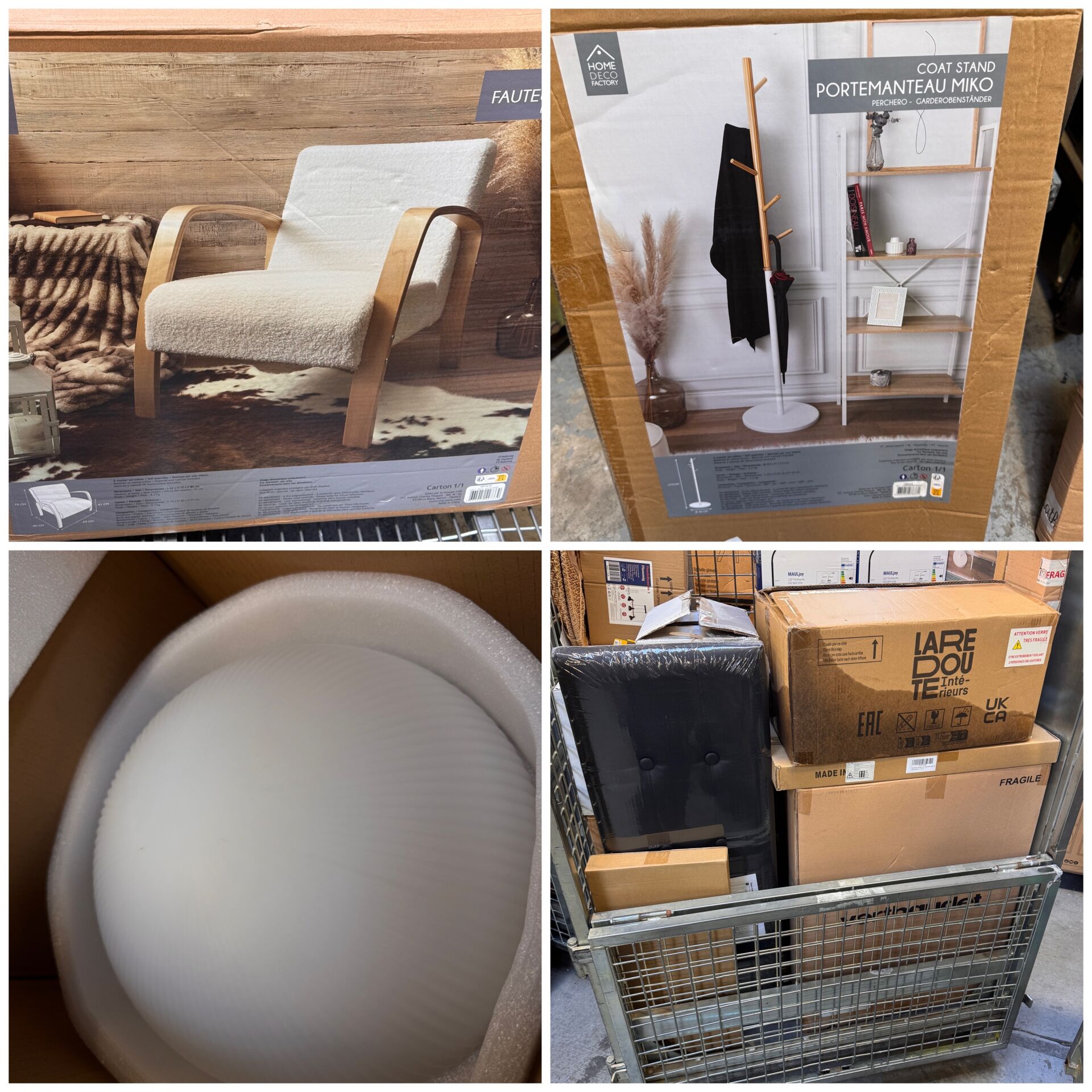 FORT ENSEMBLE DE PETITS MOBILIERS ET DECORATIONS (environ 1m3) DONT FAUTEUIL, SUSPENSION / VERBAUDET, LOBERON, HOME DECO FACTORY (expédition sur devis) Lot issu de colis non réclamés : état de fonctionnement non garanti.