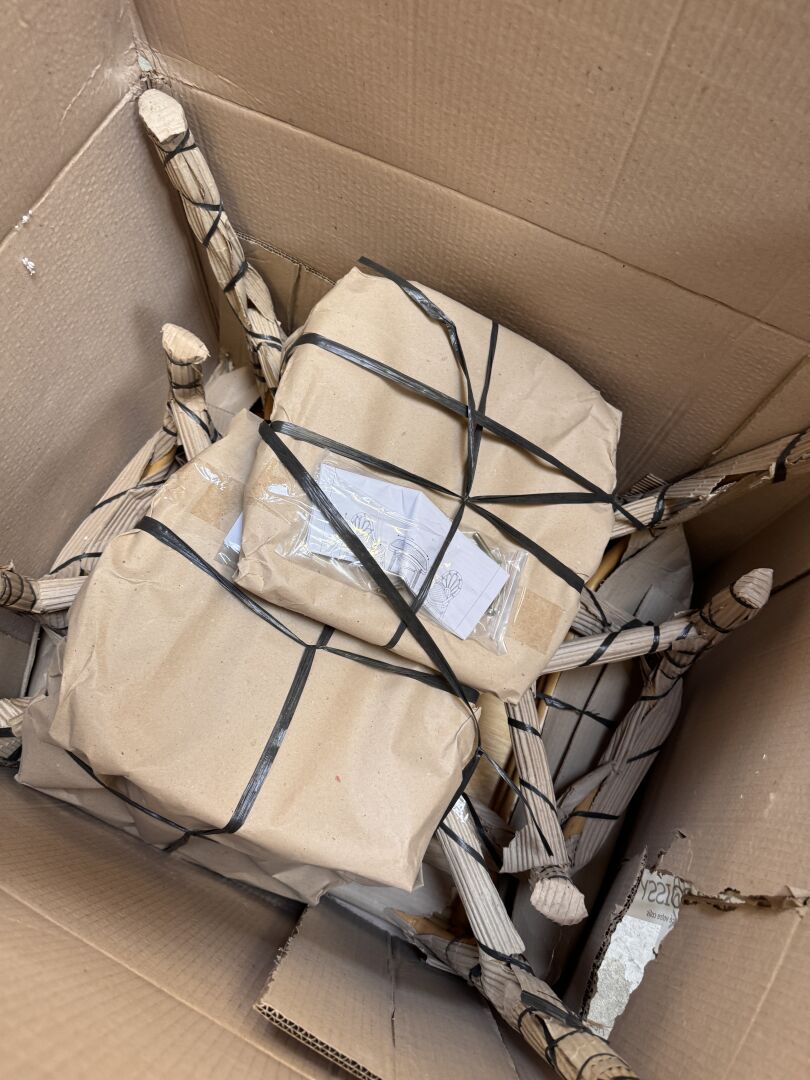 FORT ENSEMBLE DE PETITS MOBILIERS ET DECORATIONS (environ 1m3) DONT LUMINAIRES, CHAISES, (expédition sur devis) Lot issu de colis non réclamés : état de fonctionnement non garanti.