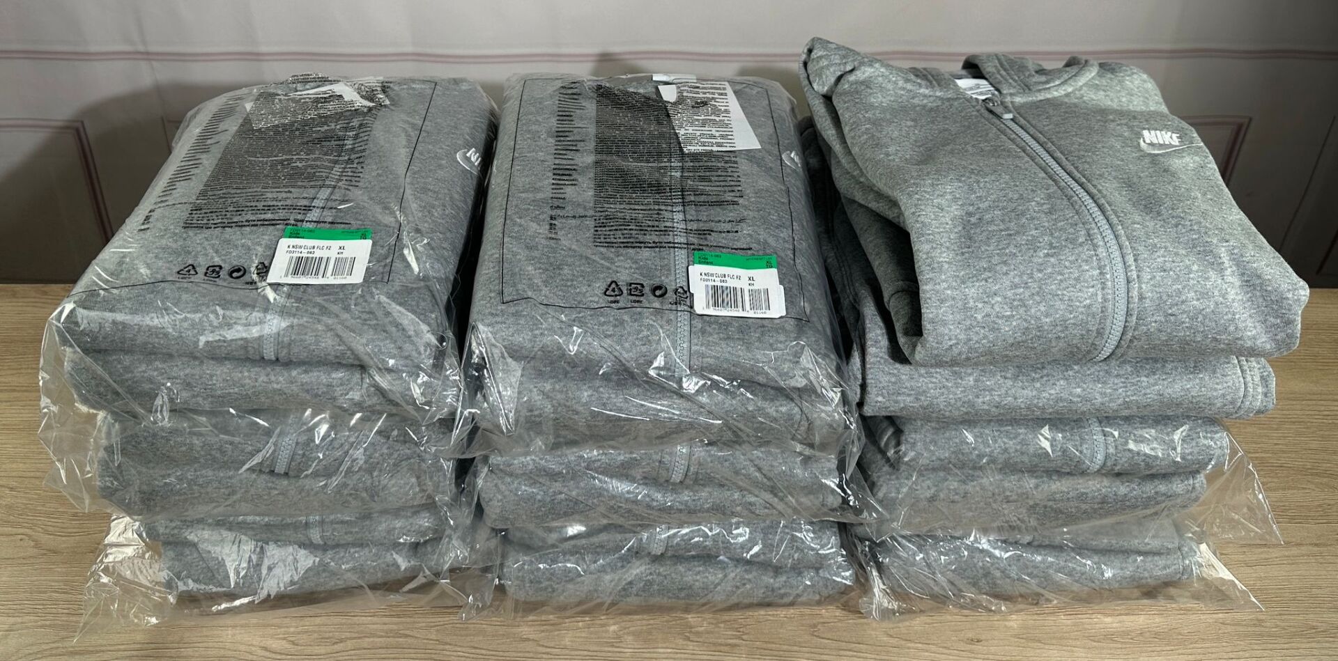 NIKE - Ensemble de neuf tenues de sport pour enfant, sweat et pantalon, coton gris chiné. Taille indiquée XL 158-170 Non porté