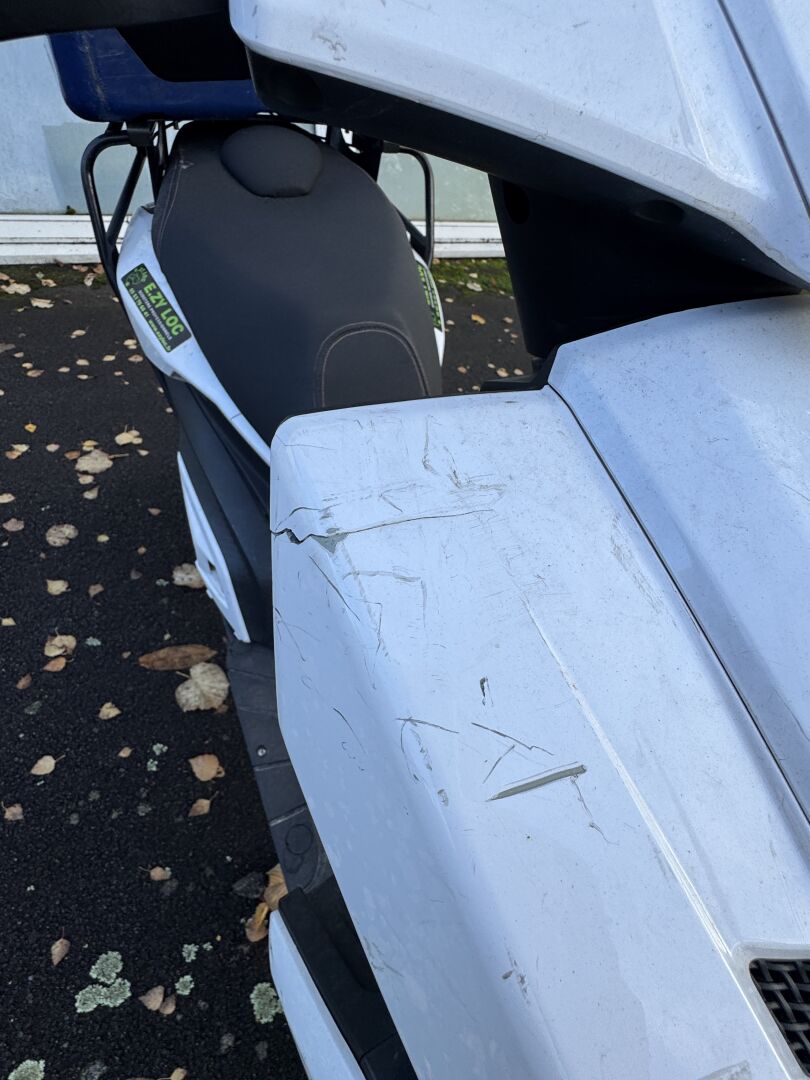 NE DEMARRE PAS. VENDU SANS CHARGEUR DE BATTERIE. NOMBREUX FROTTEMENTS ET CHOCS- BEQUILLE CASSEE- MANQUE LE CARENAGE SOUS LE PIED DROIT. FRAIS JUDICIAIRES 11.9 % HT