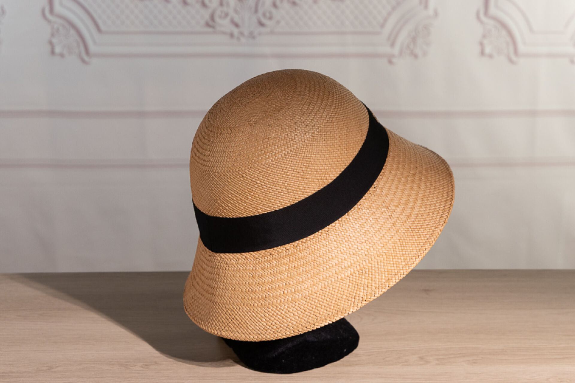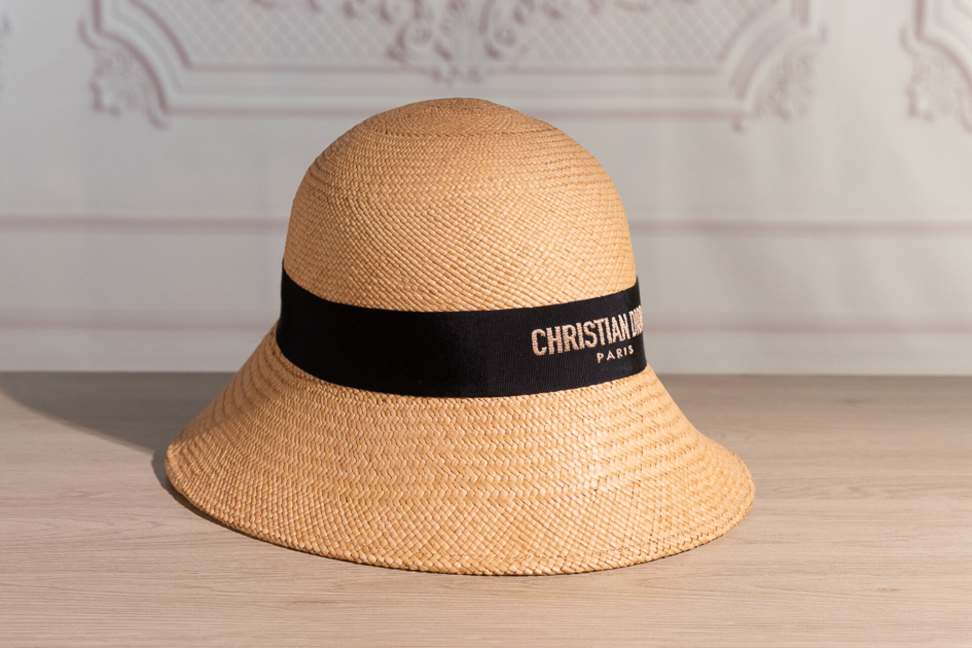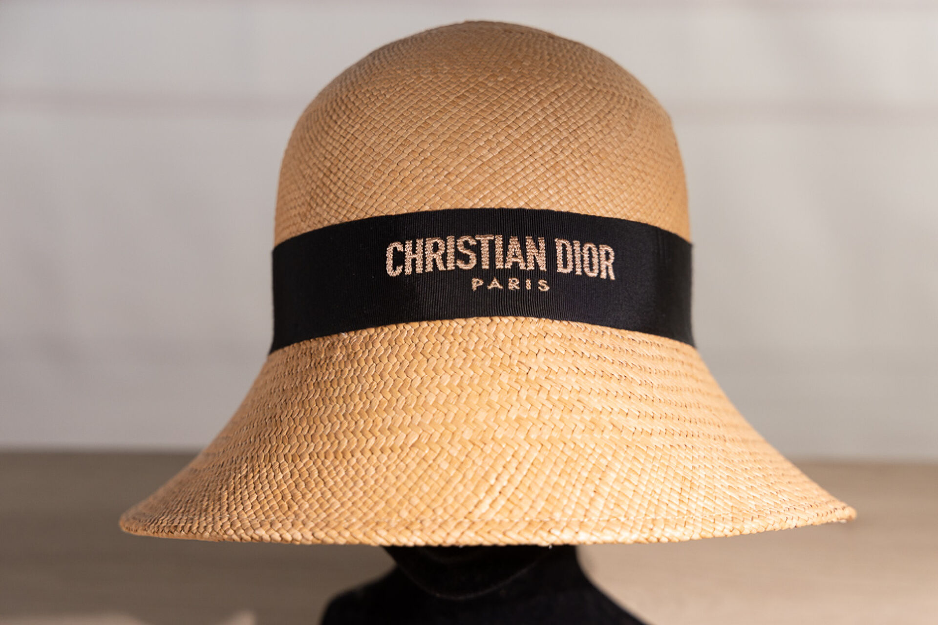 CHRISTIAN DIOR - Chapeau cloche en paille tressée, gansé en tour de tête d'un gros grain noir. Tour de tête 60 environ