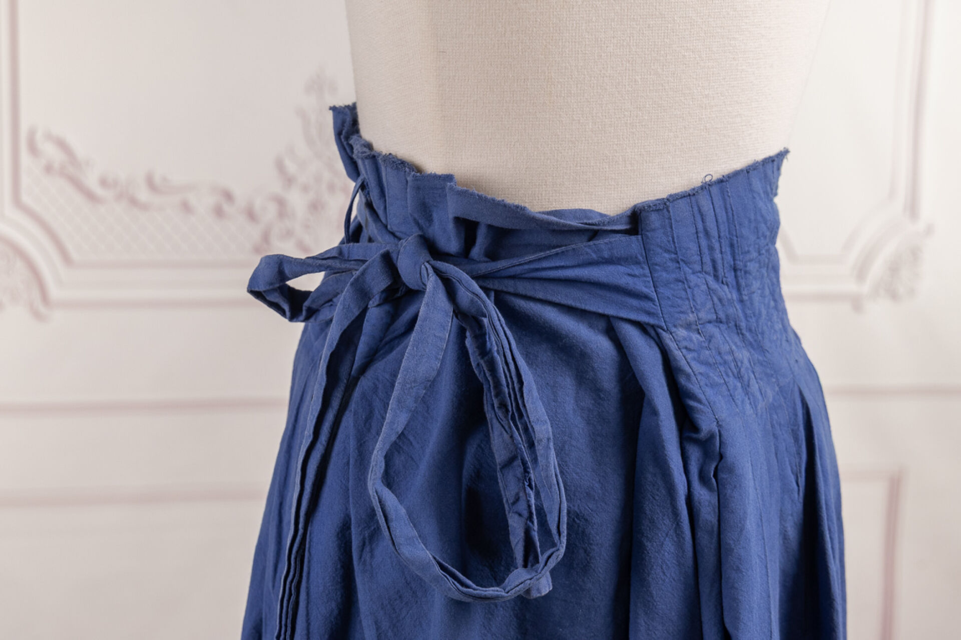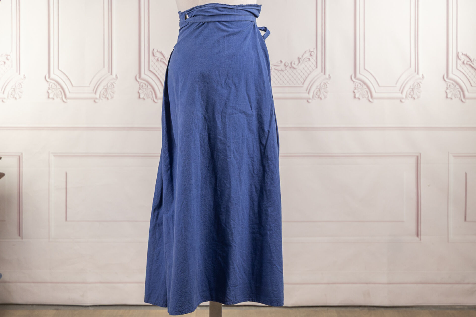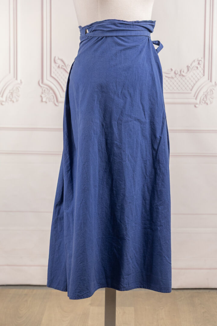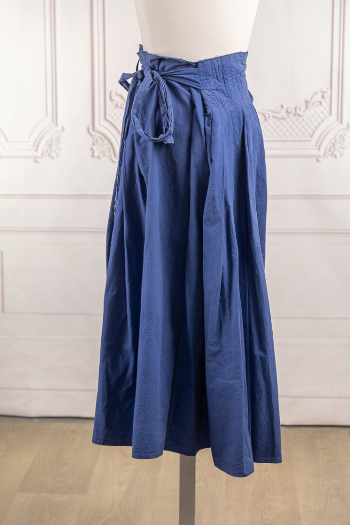 DANIELA GREGIS - Jupe longue en coton bleu indigo, froncé/plissé de chaque coté, taille à nouer à volonté. Taille S