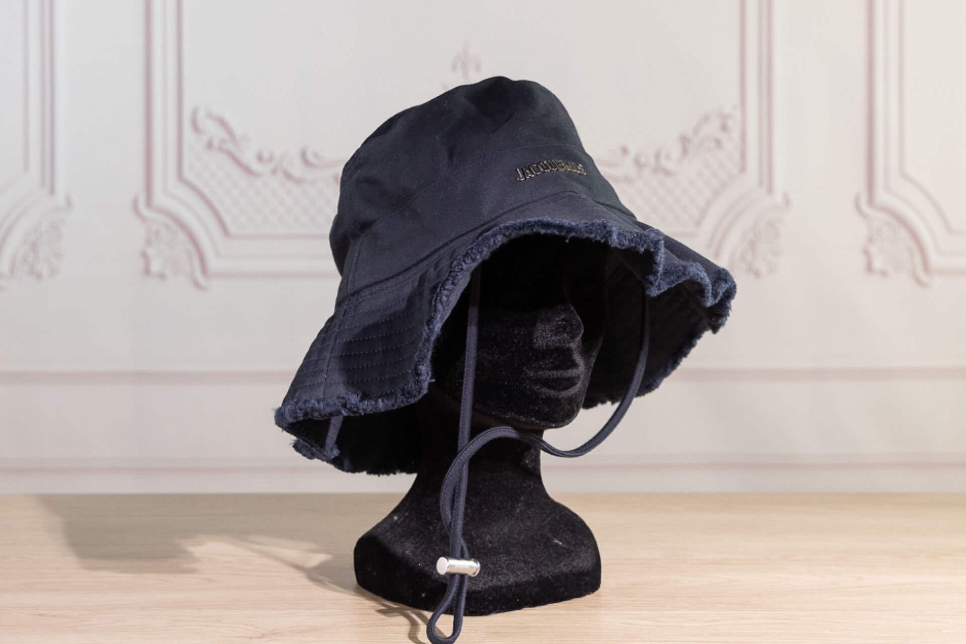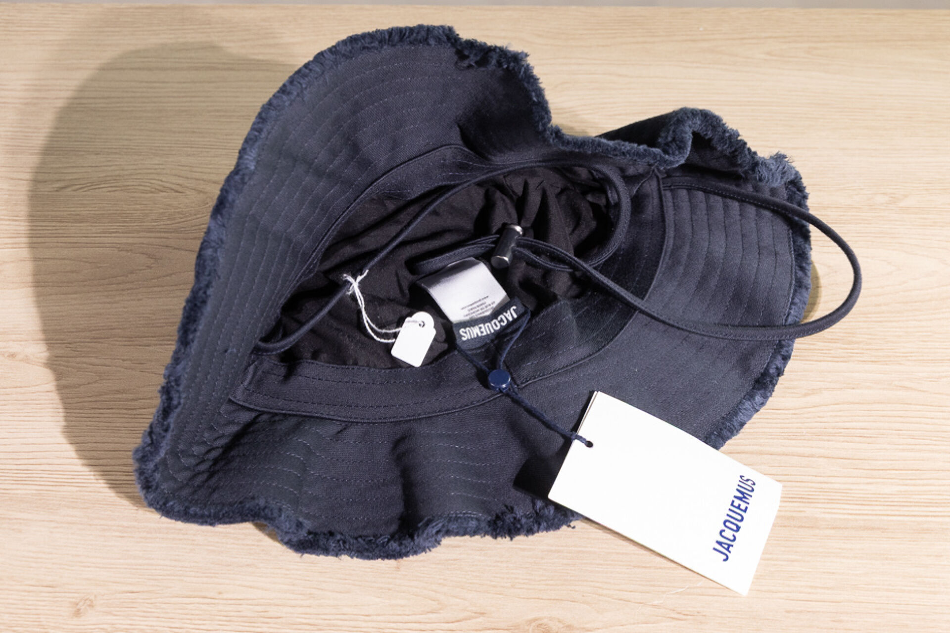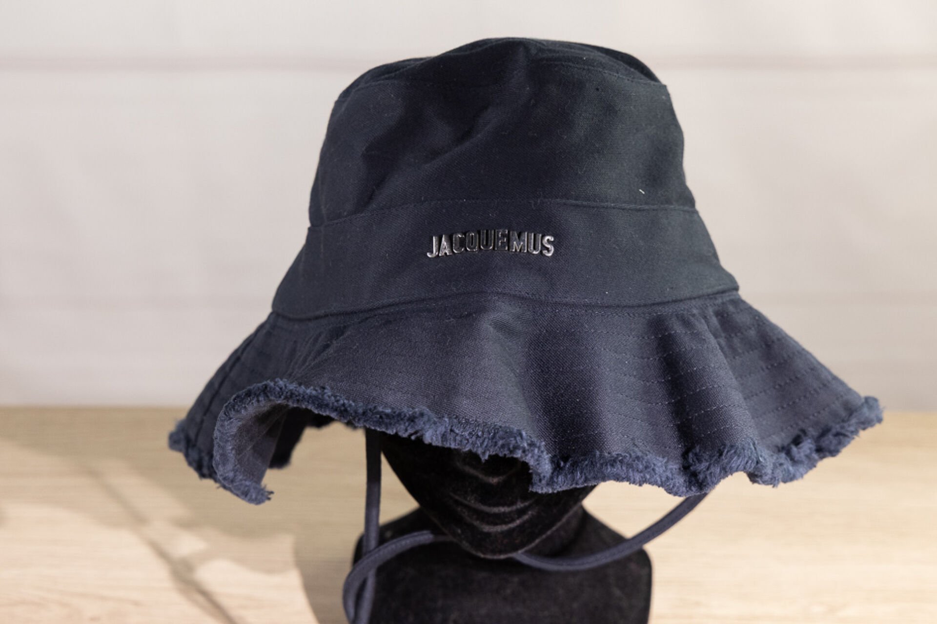 JACQUEMUS - Bob Artichaut en toile coton noir à bords francs, tour de tete et jugulaire réglables. Taille indiquée 58. Etiquette d'origine.