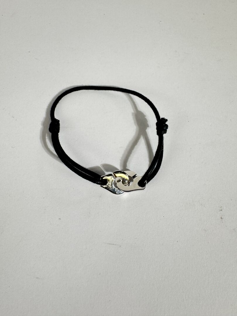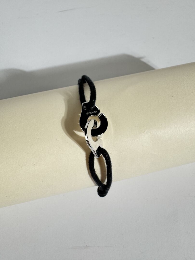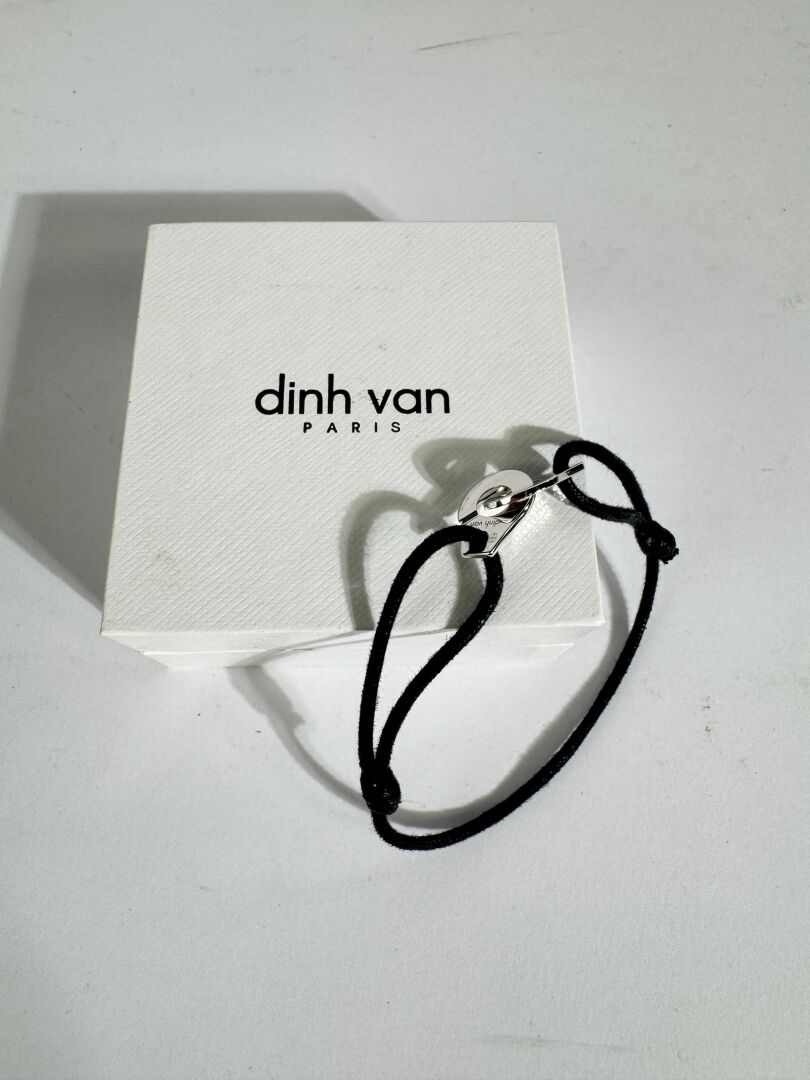 DINH VAN - Bracelet menottes R12 en argent 925 millièmes, cordon noir ajustable. Boite. Poids brut : 3.36 gr