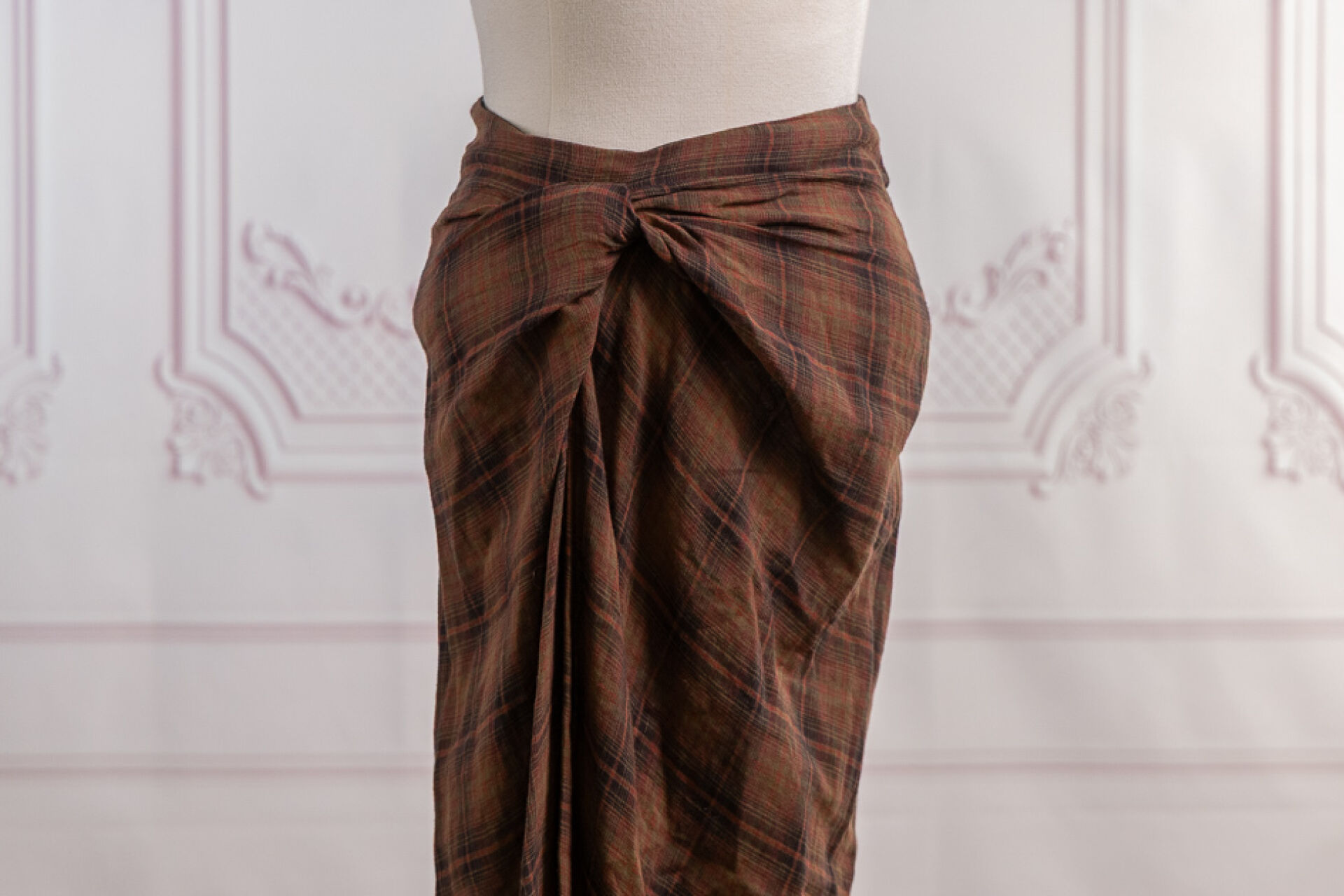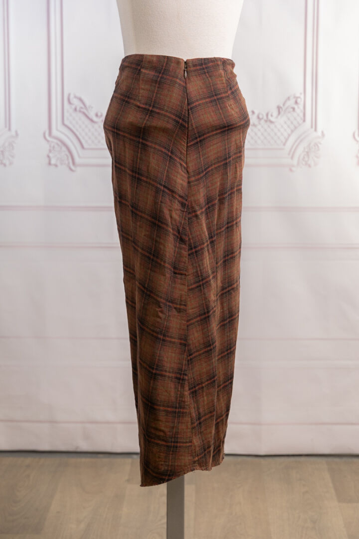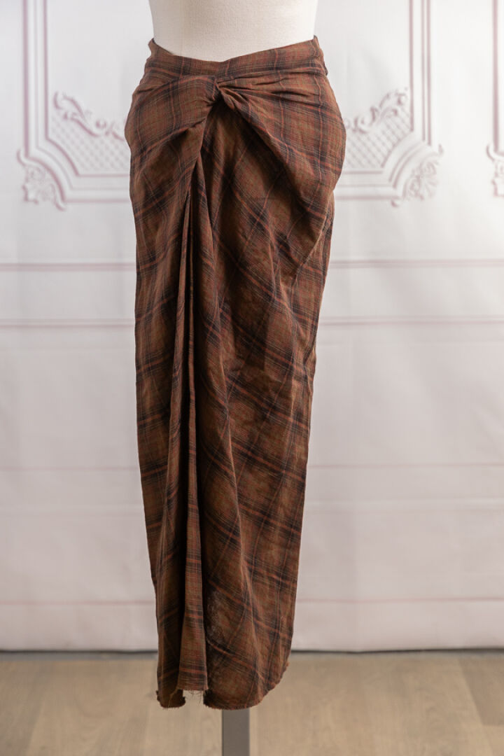 MARANT Etoile - Jupe Nicole en coton imprimé écossais rouge, vert, noir à nœud plissé ramassé à la taille, bas à bords francs. Taille indiquée 40 Non portée étiquette d'origine