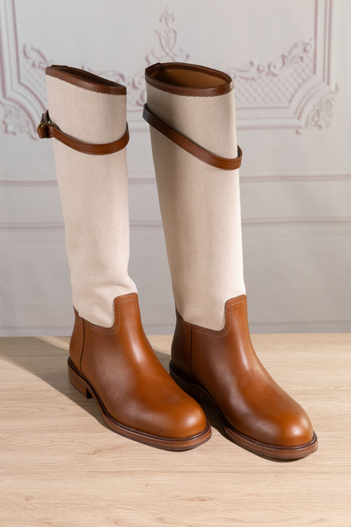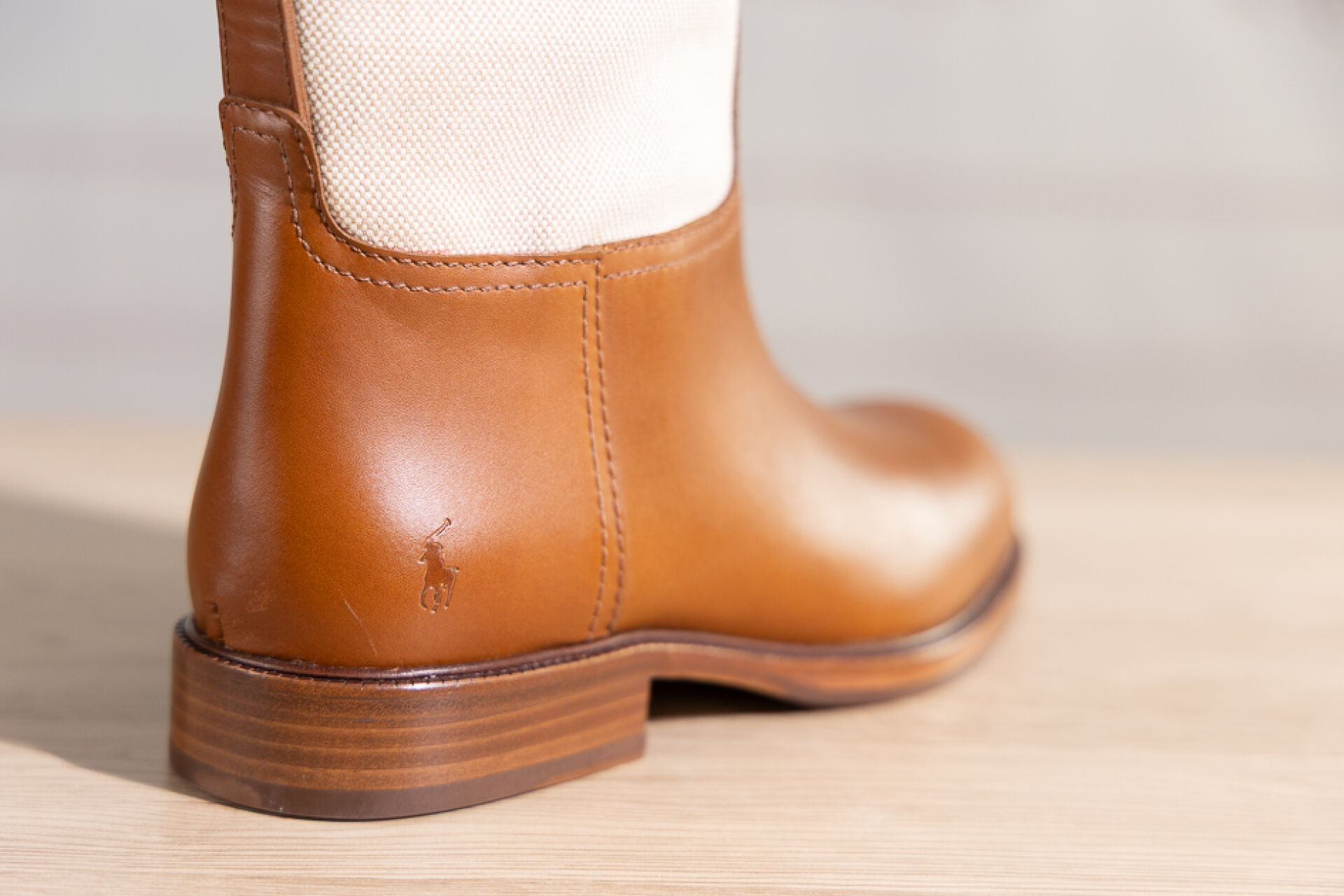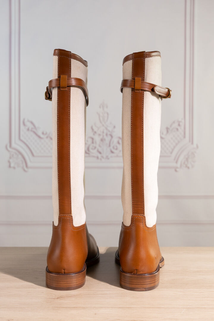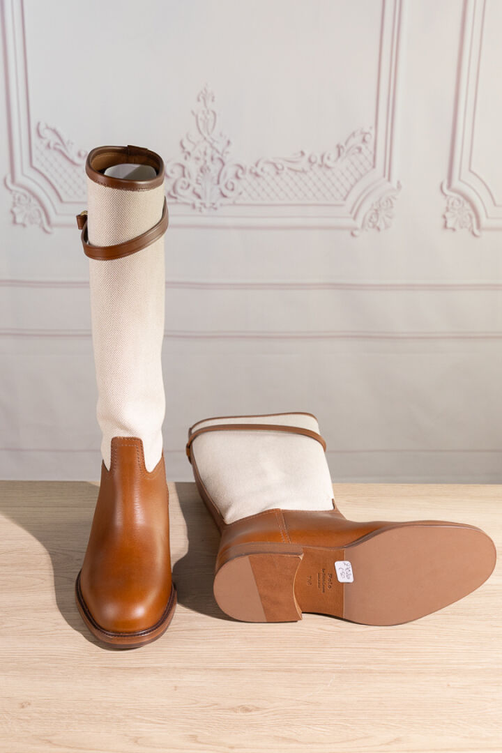 POLO by RALPH LAUREN - Paire de bottes en toile chinée et cuir naturel, attache bride sur le haut. Pointure indiquée 7,5B (soit 37,5 français) Non portées, légères griffures