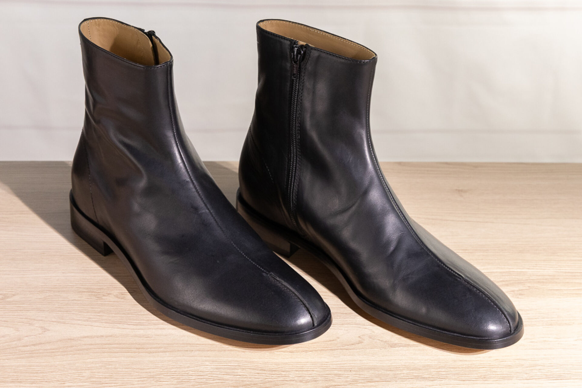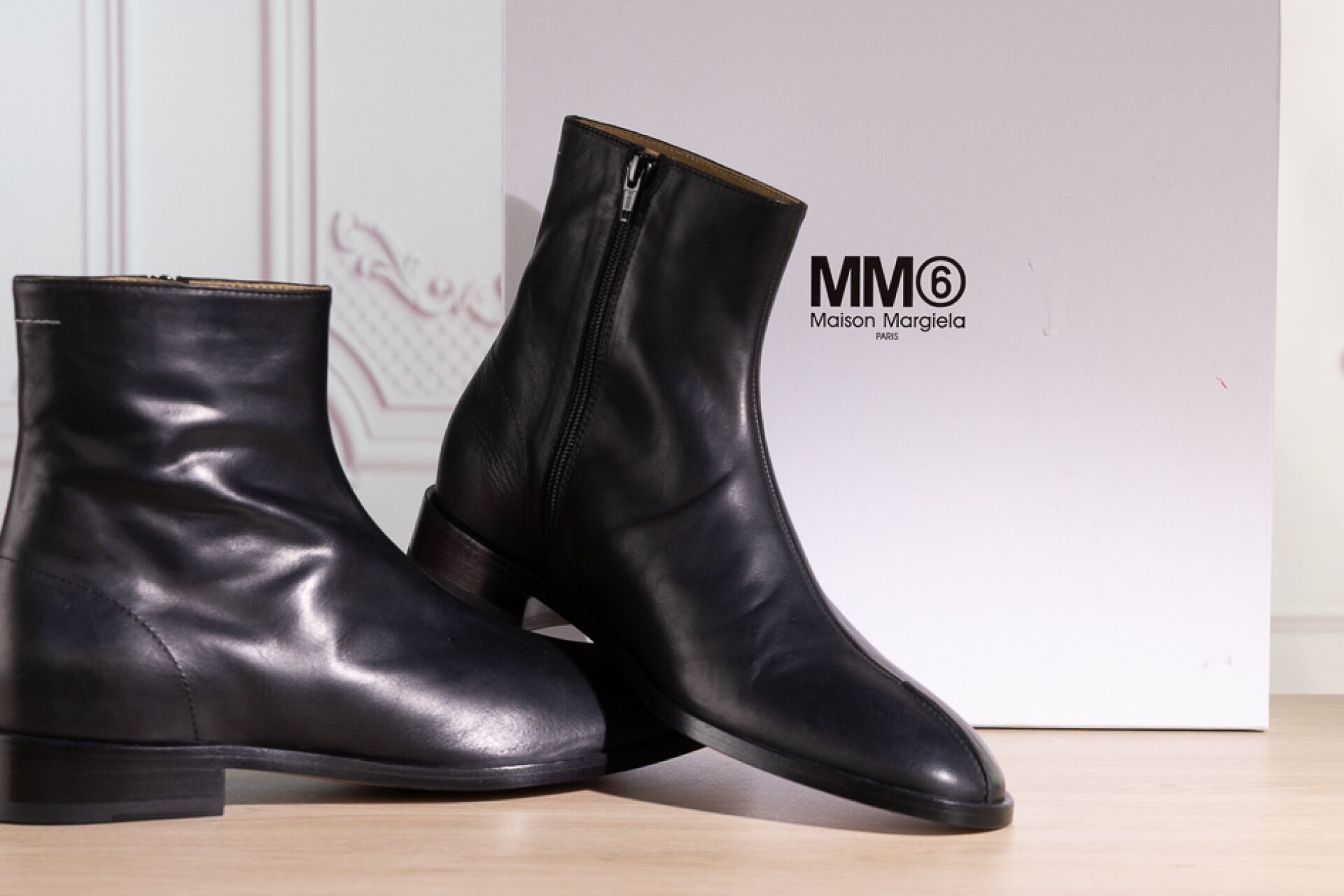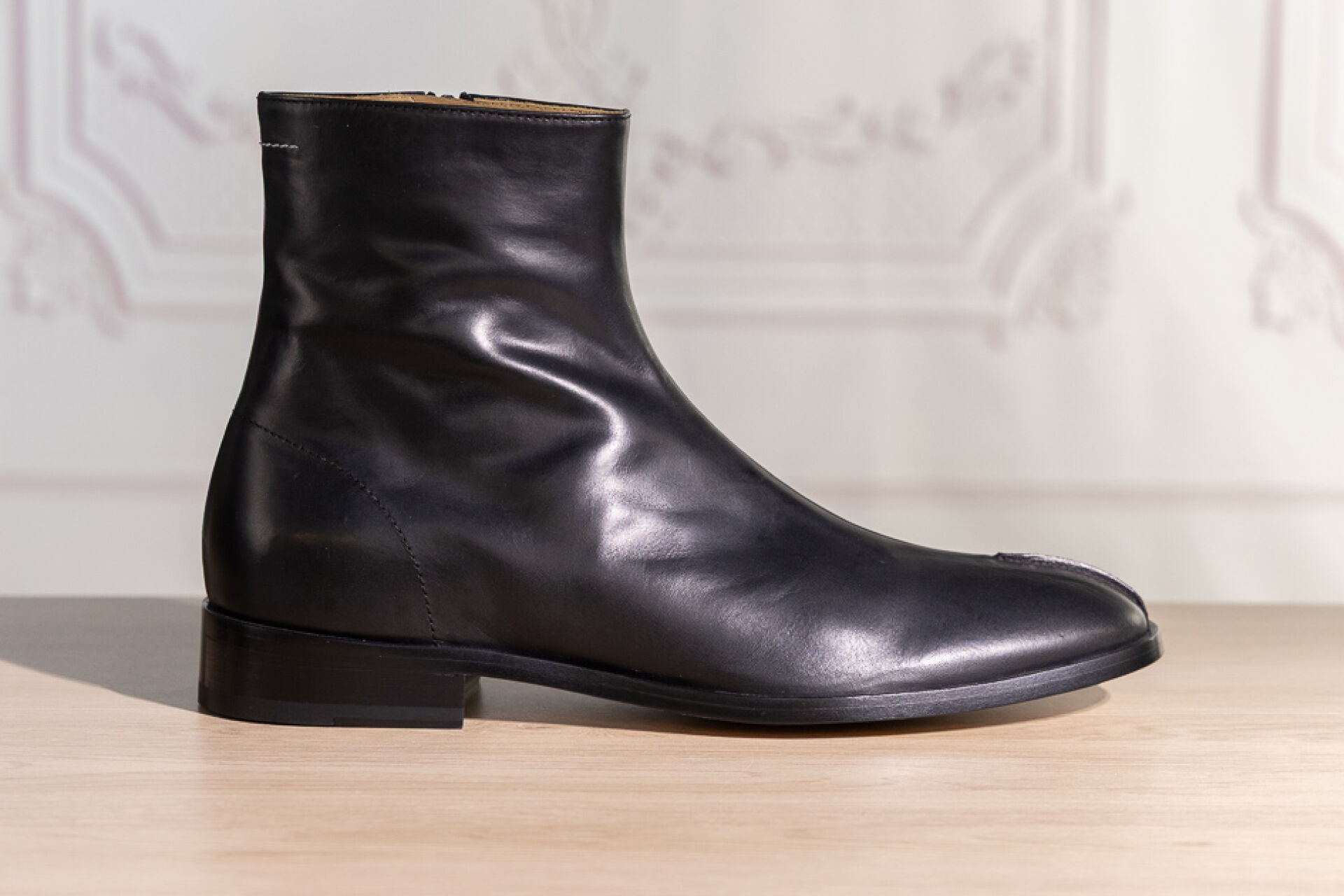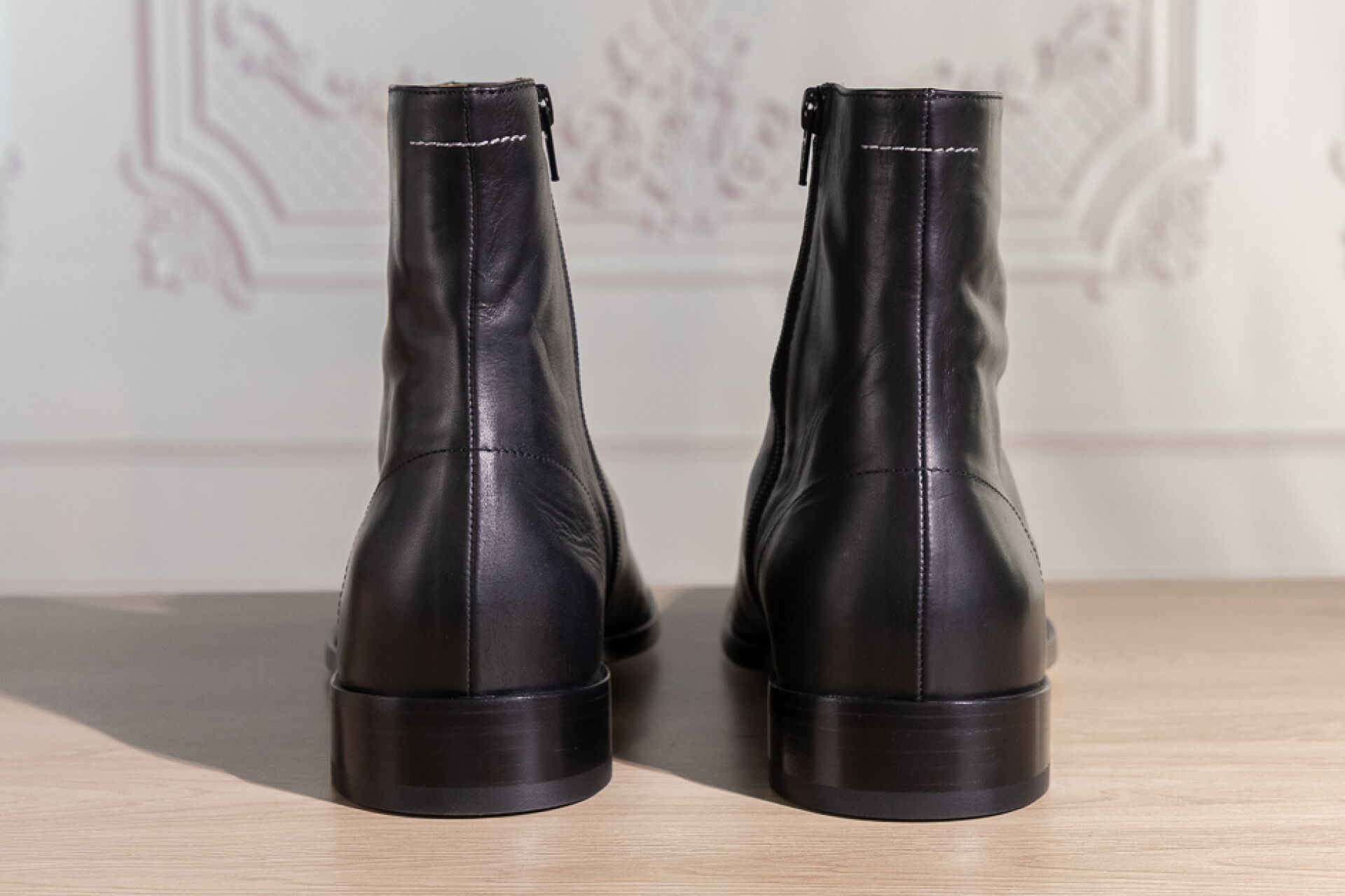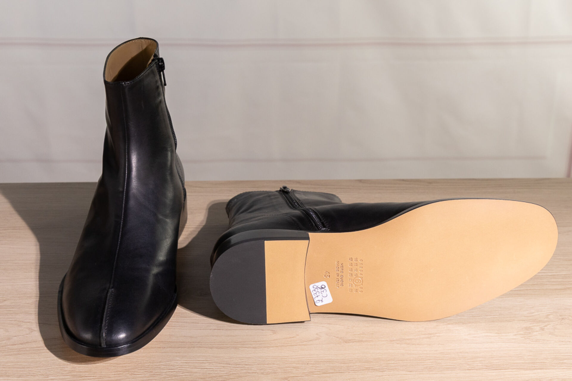 MAISON MARGIELA Ligne 6 - Paire de bottines homme en cuir noir. Pointure 43 Non portées, housse, boite
