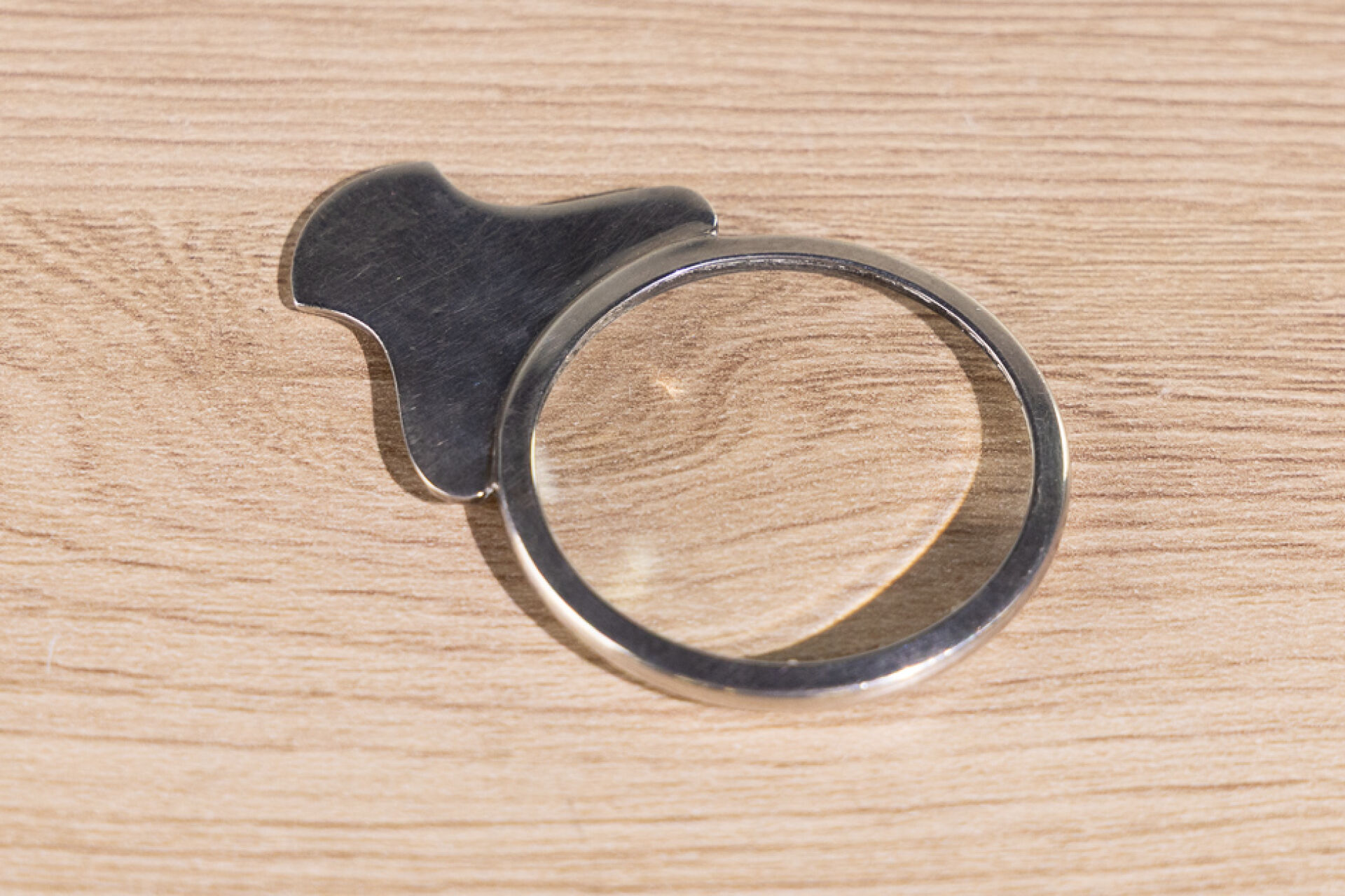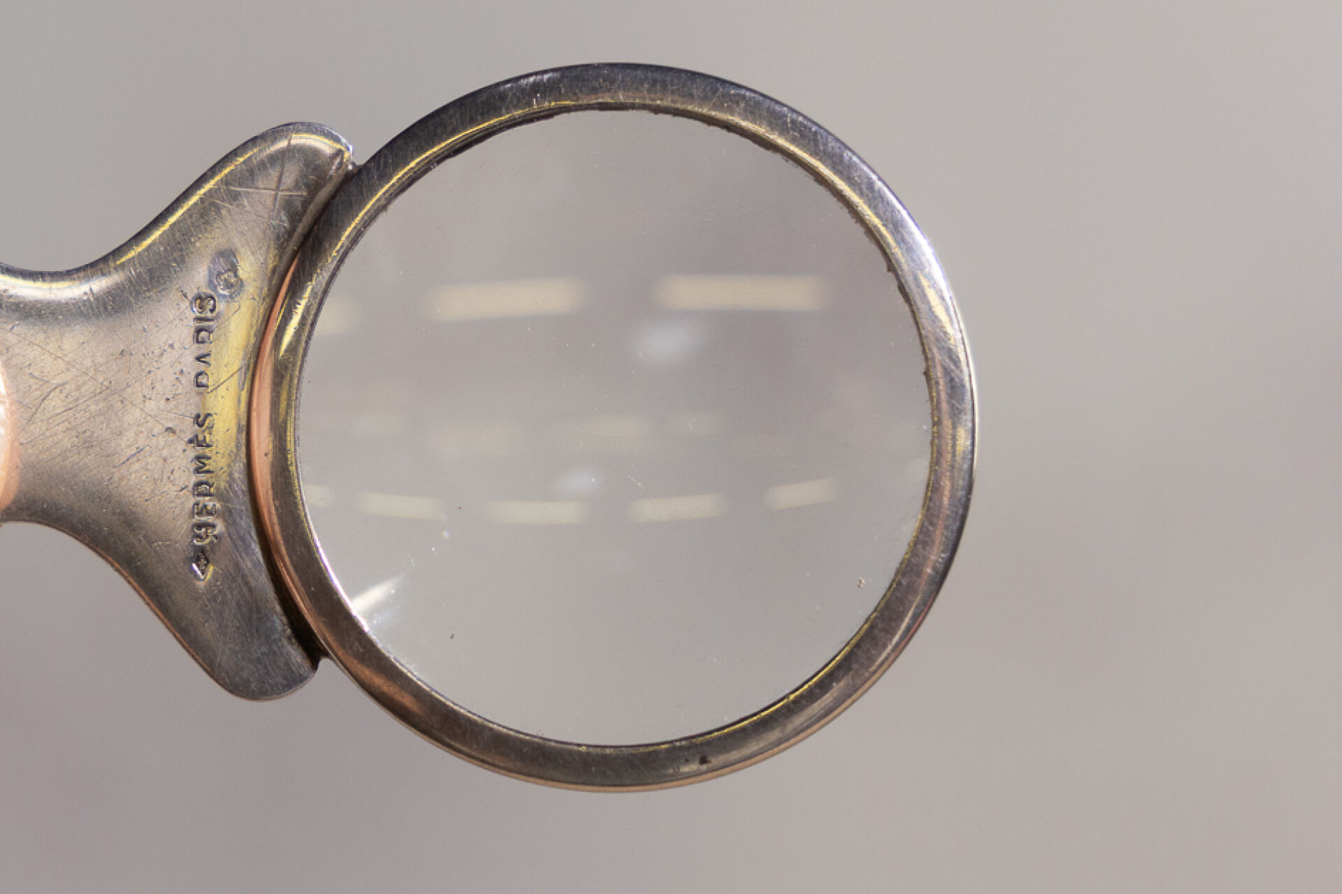 HERMES Paris - Petite loupe de bureau en argent 925 millièmes. Poids brut : 20.53 gr - Diam. : 4 cm Quelques rayures