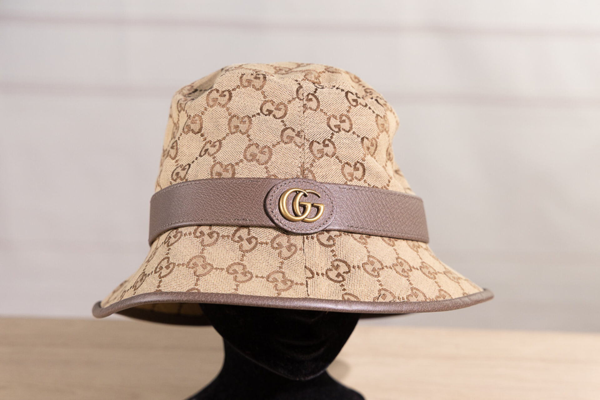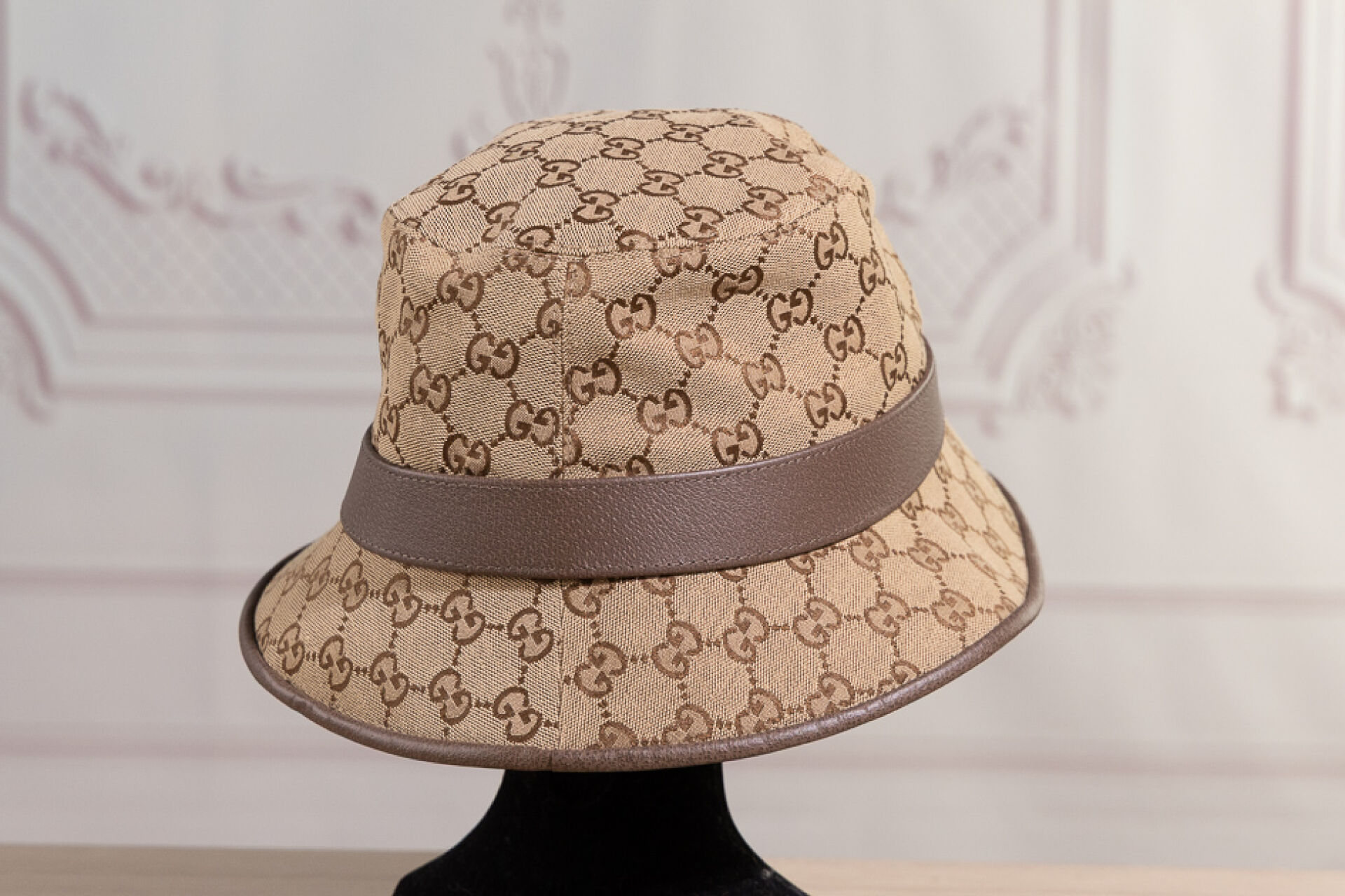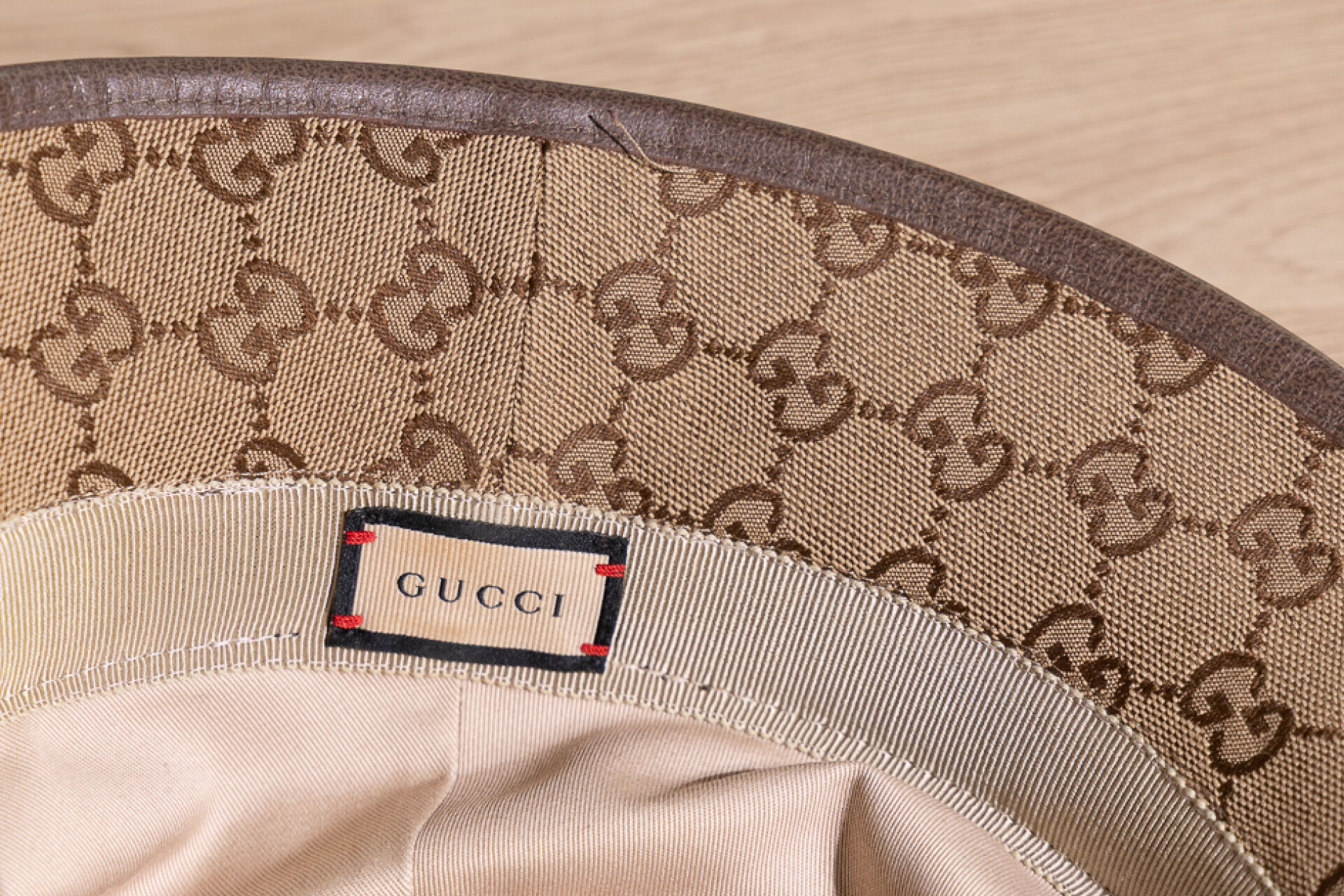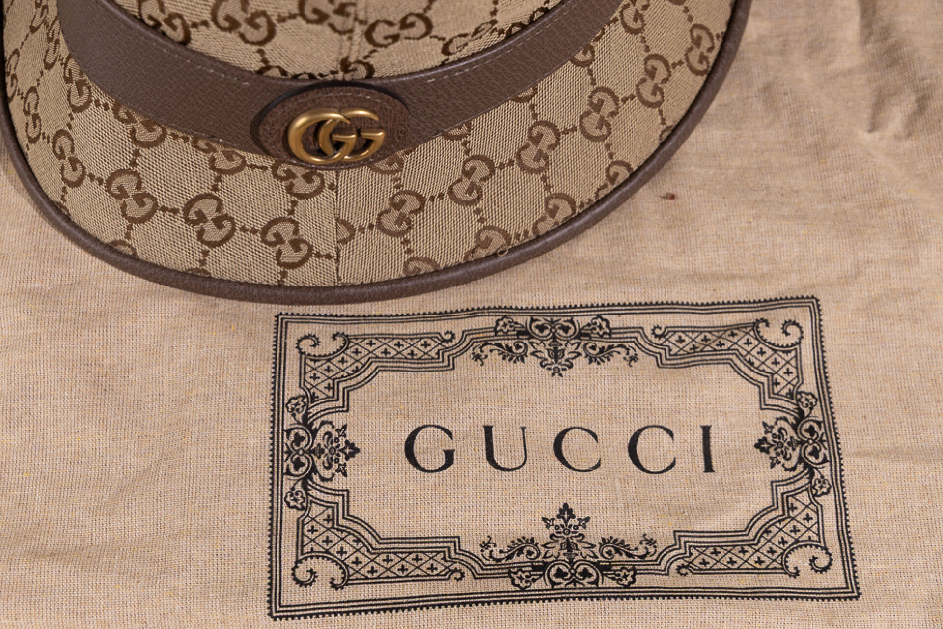 GUCCI - Bob modèle "Fedora" en toile GG marron/beige et cuir beige. Taille XL-60 Etat neuf, dustbag et sac papier Gucci