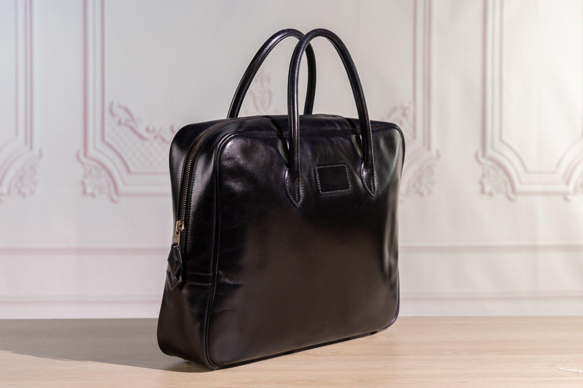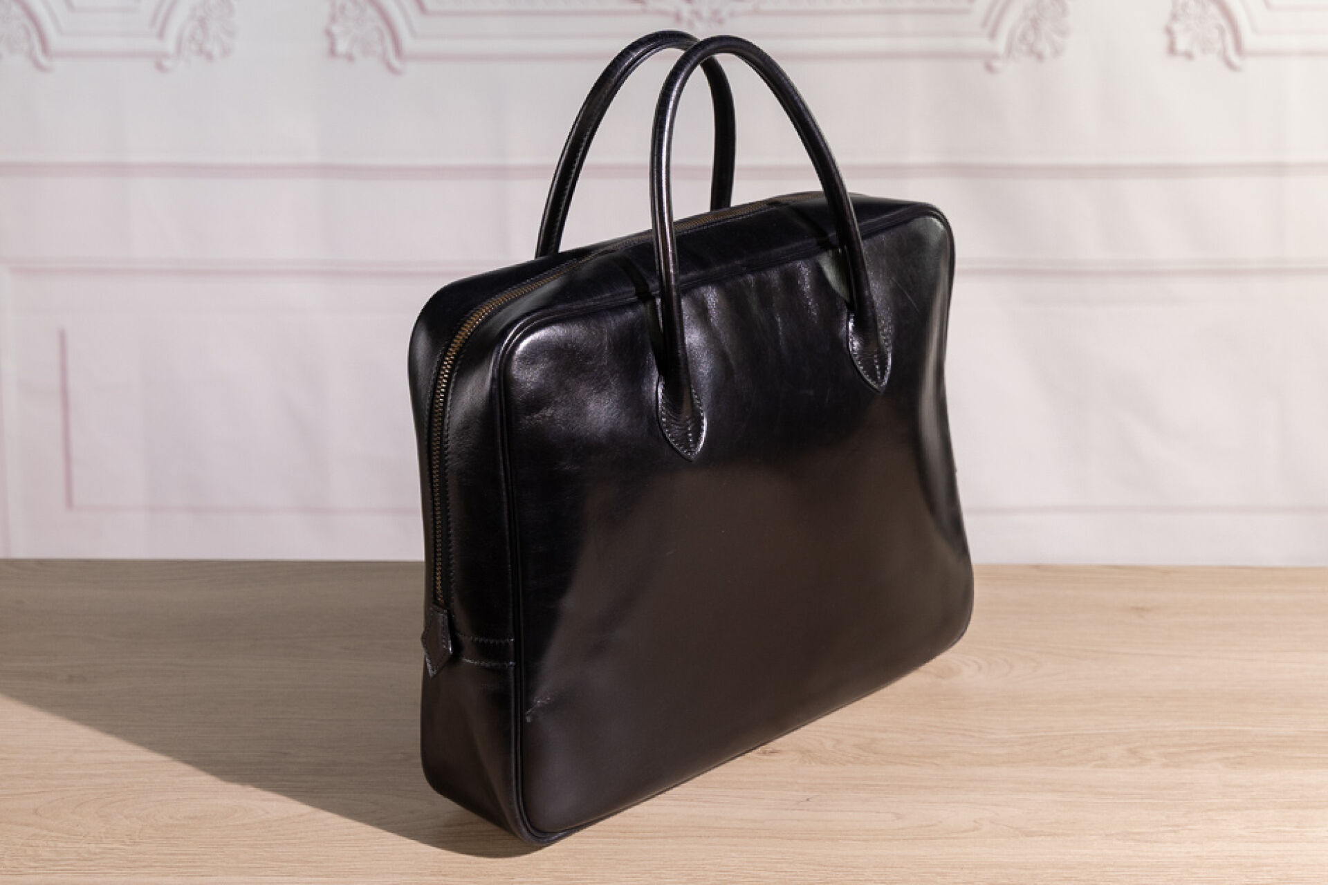HERMÈS PARIS Made in France, 1994 - Sac Eiffel porte-documents en box noir, double poignée, fermeture à glissière, doublure à deux poches plaquées. Haut. : 26 cm ; Long. : 34 cm ; Prof. : 9 cm