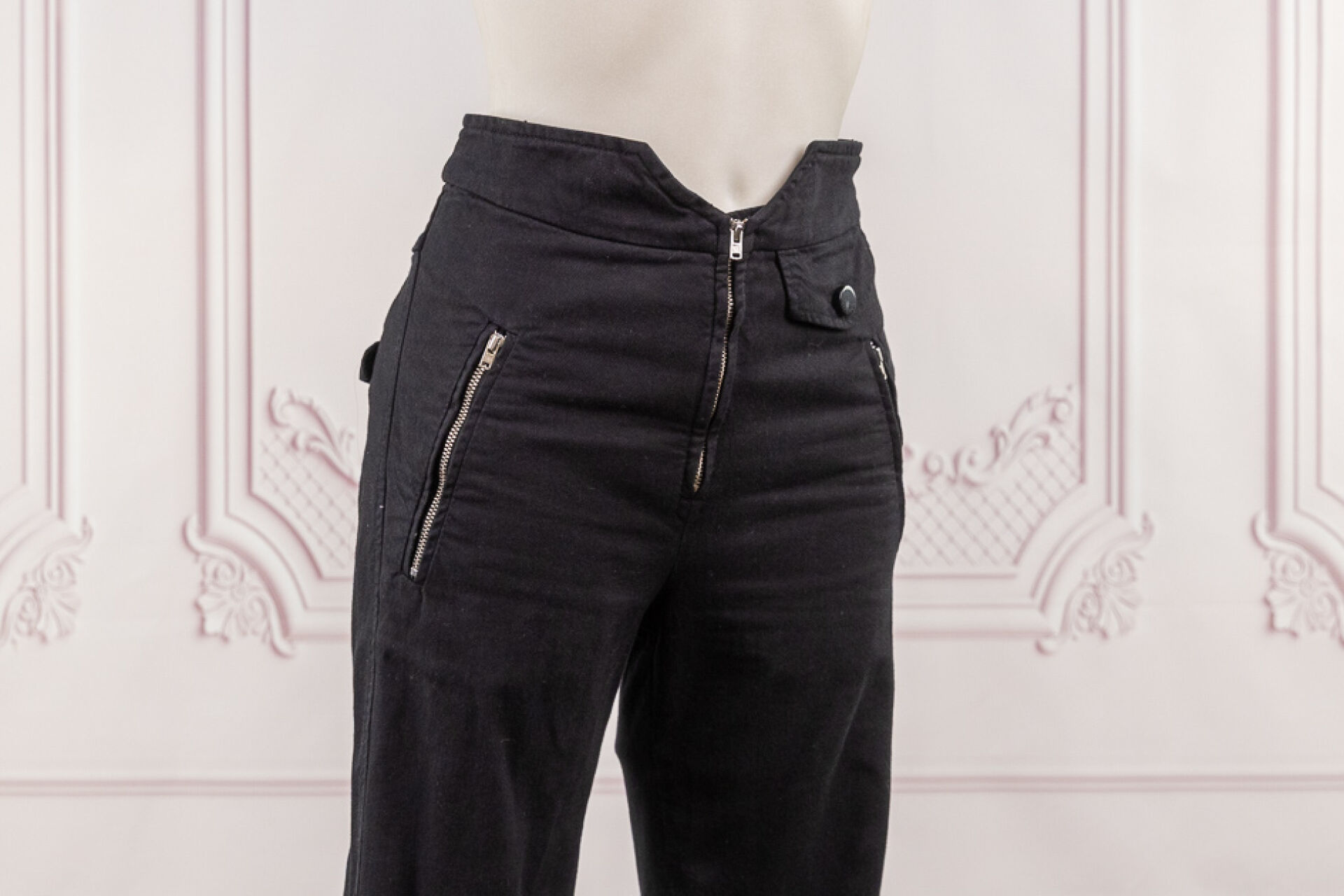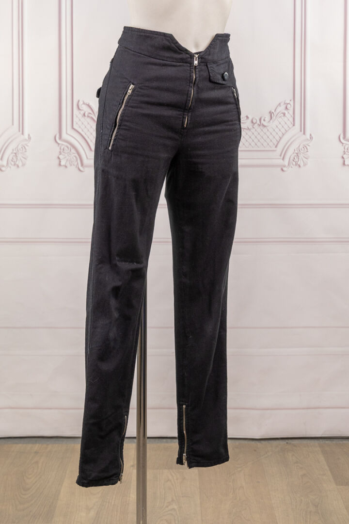ISABEL MARANT - Pantalon de forme ajusté, denim noir, fermeture à glissière, zips aux chevilles. Taille 36 Déjà porté, bon état général