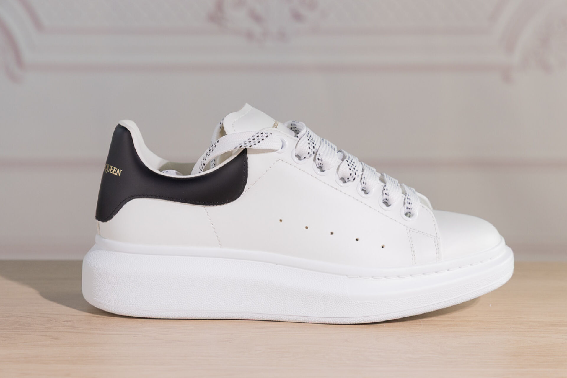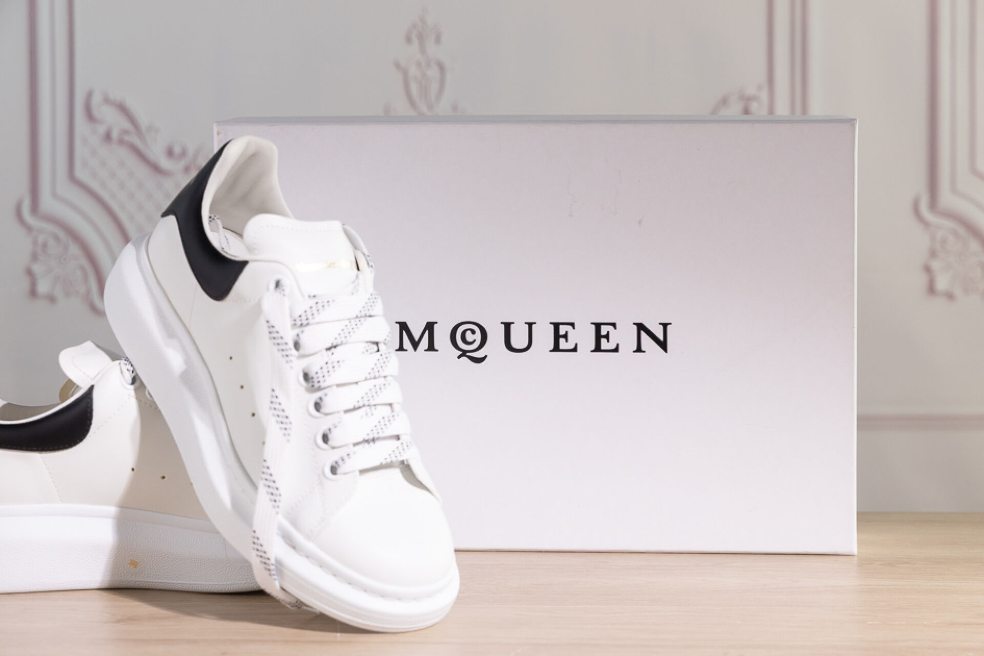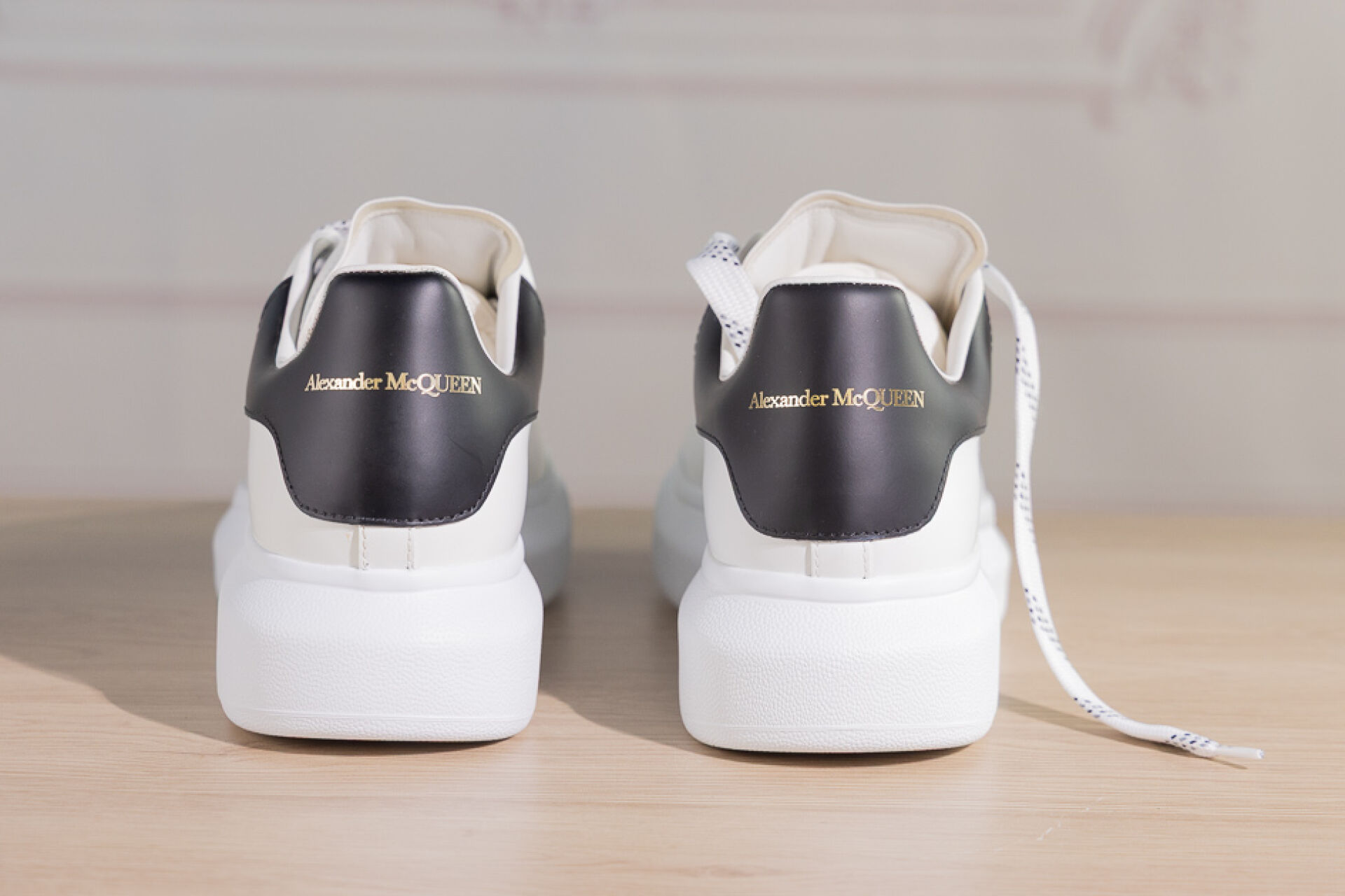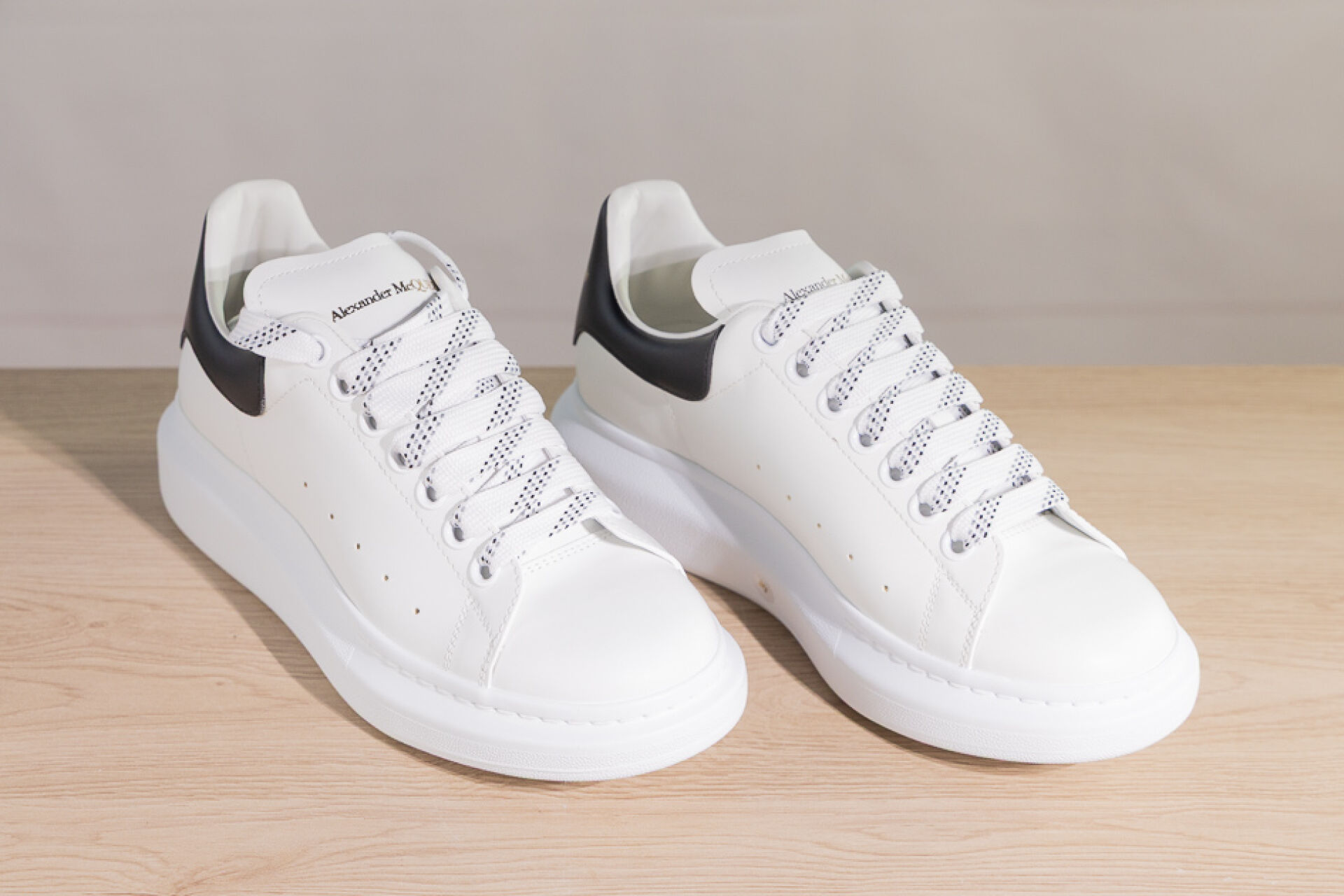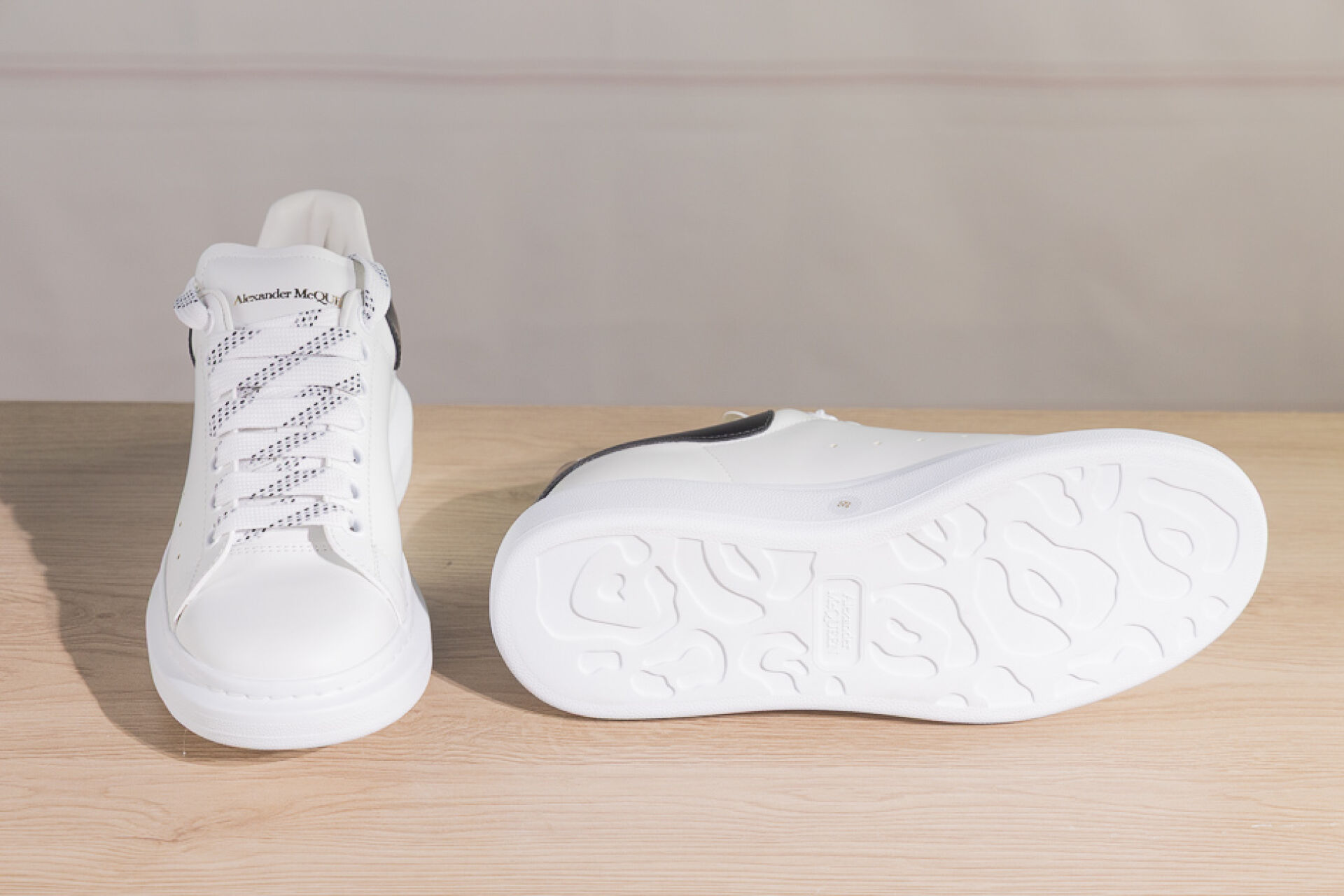 ALEXANDER MCQUEEN - Paire de sneakers en cuir blanc et noir à lacets. Pointure indiquée 39 Etat neuf, dans leur boite