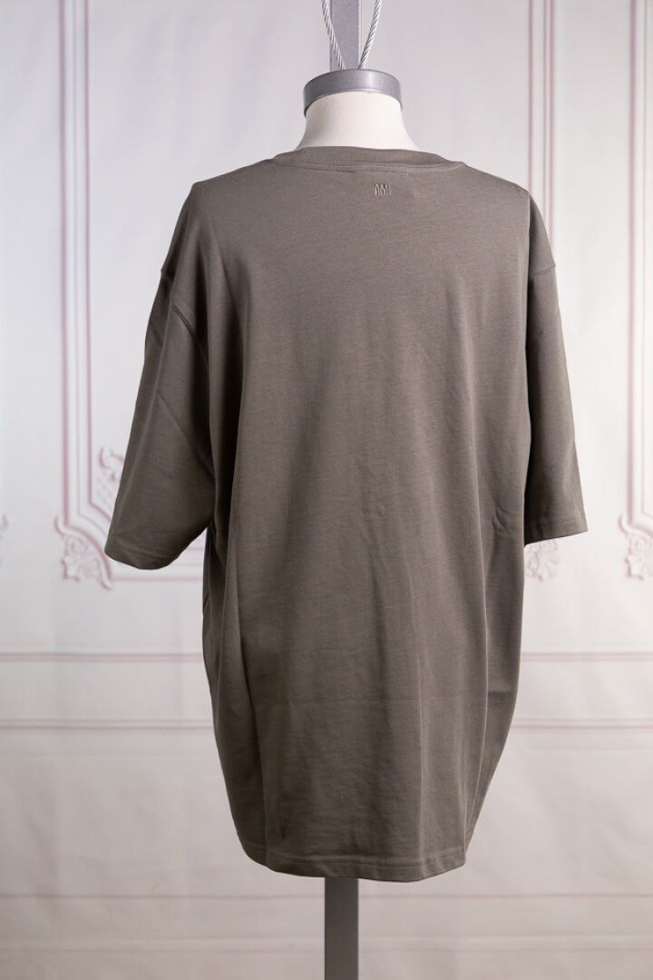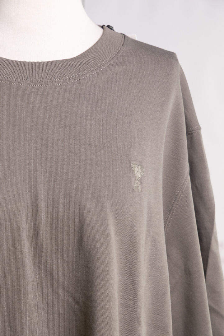AMI par ALEXANDRE MATTIUSSI - T-shirt homme en coton vert sauge rehaussé du sigle au cœur à la couleur sur la poitrine, encolure ronde, manches courtes. Taille indiquée L Non porté, étiquette d'origine