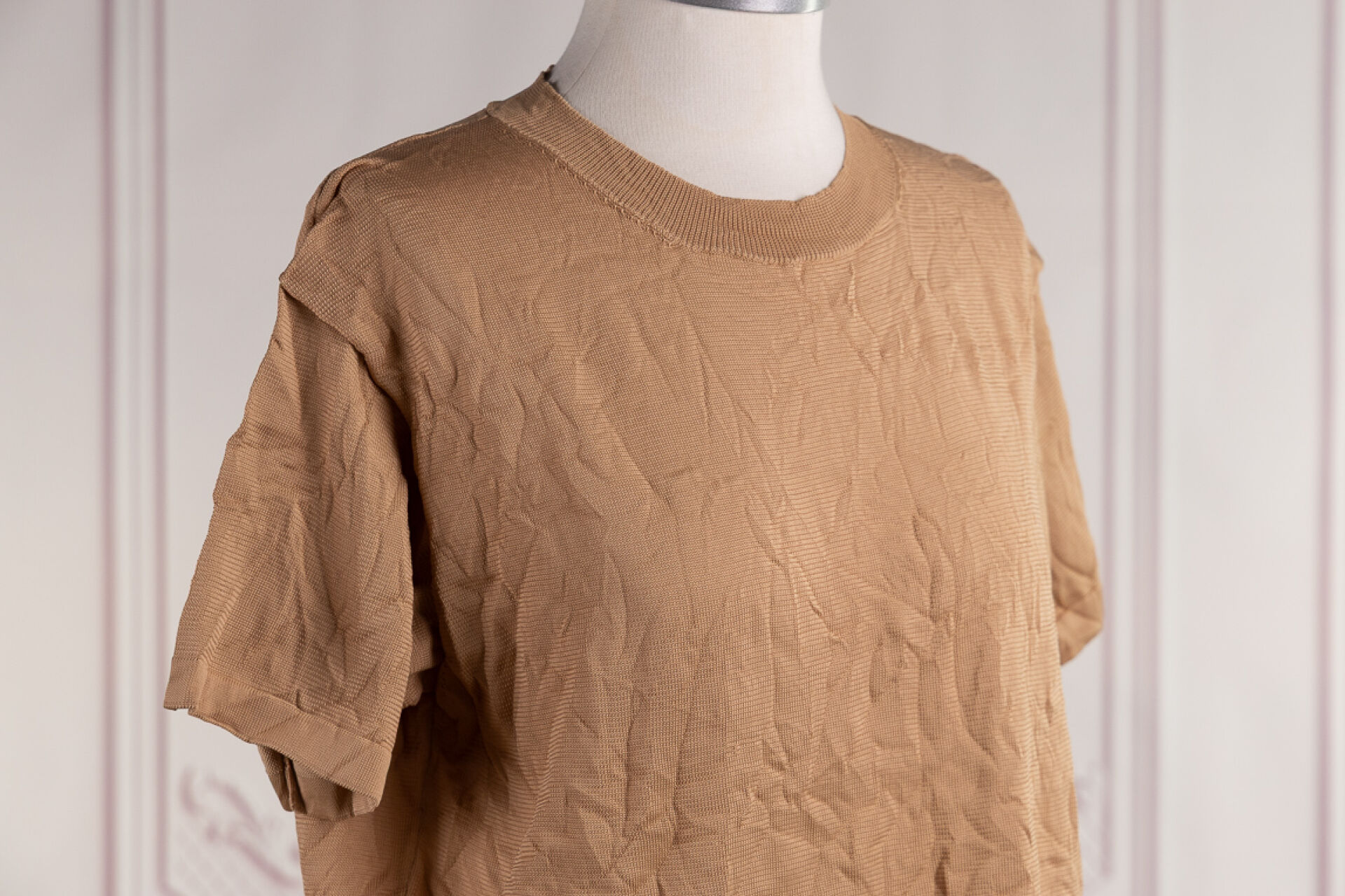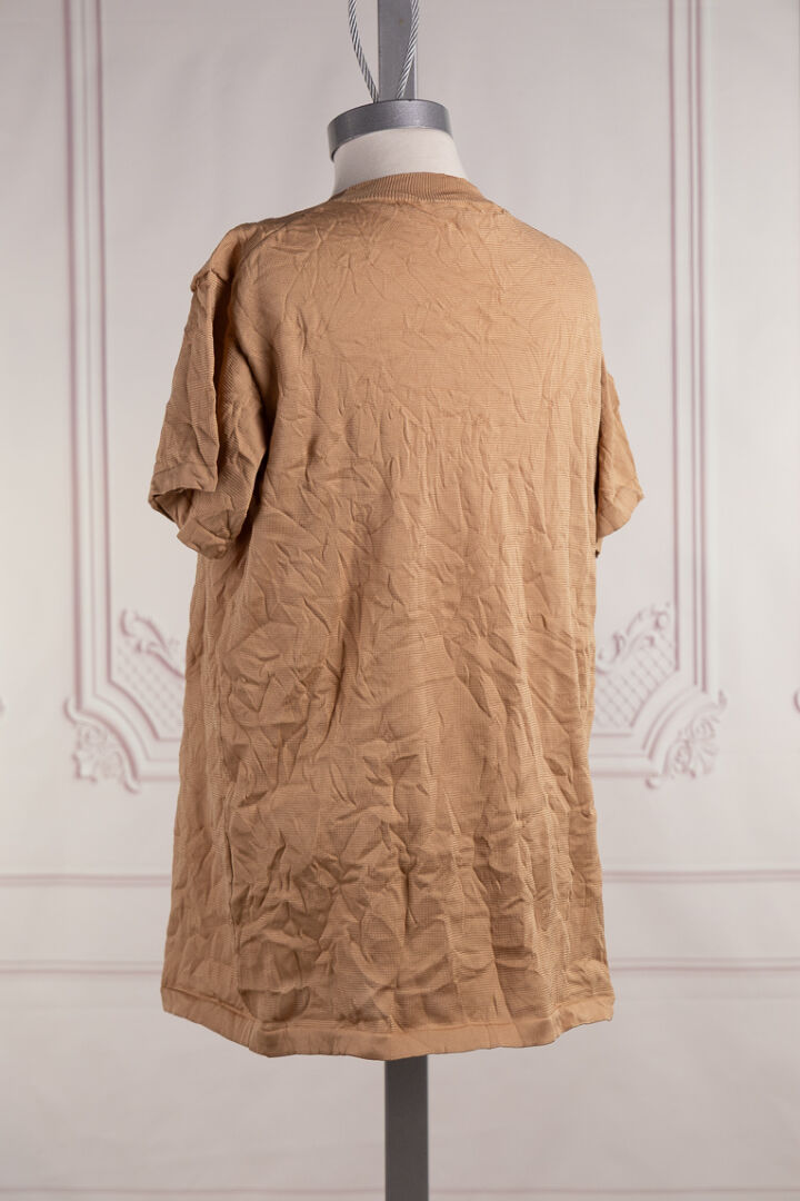 ACNE STUDIO - T-shirt coton et polyester mélangé beige, col rond, manches courtes. Taille indiquée XS Bon état