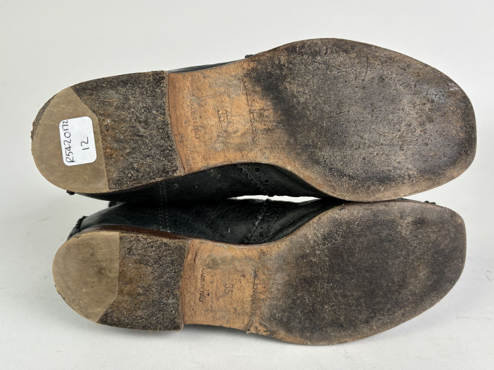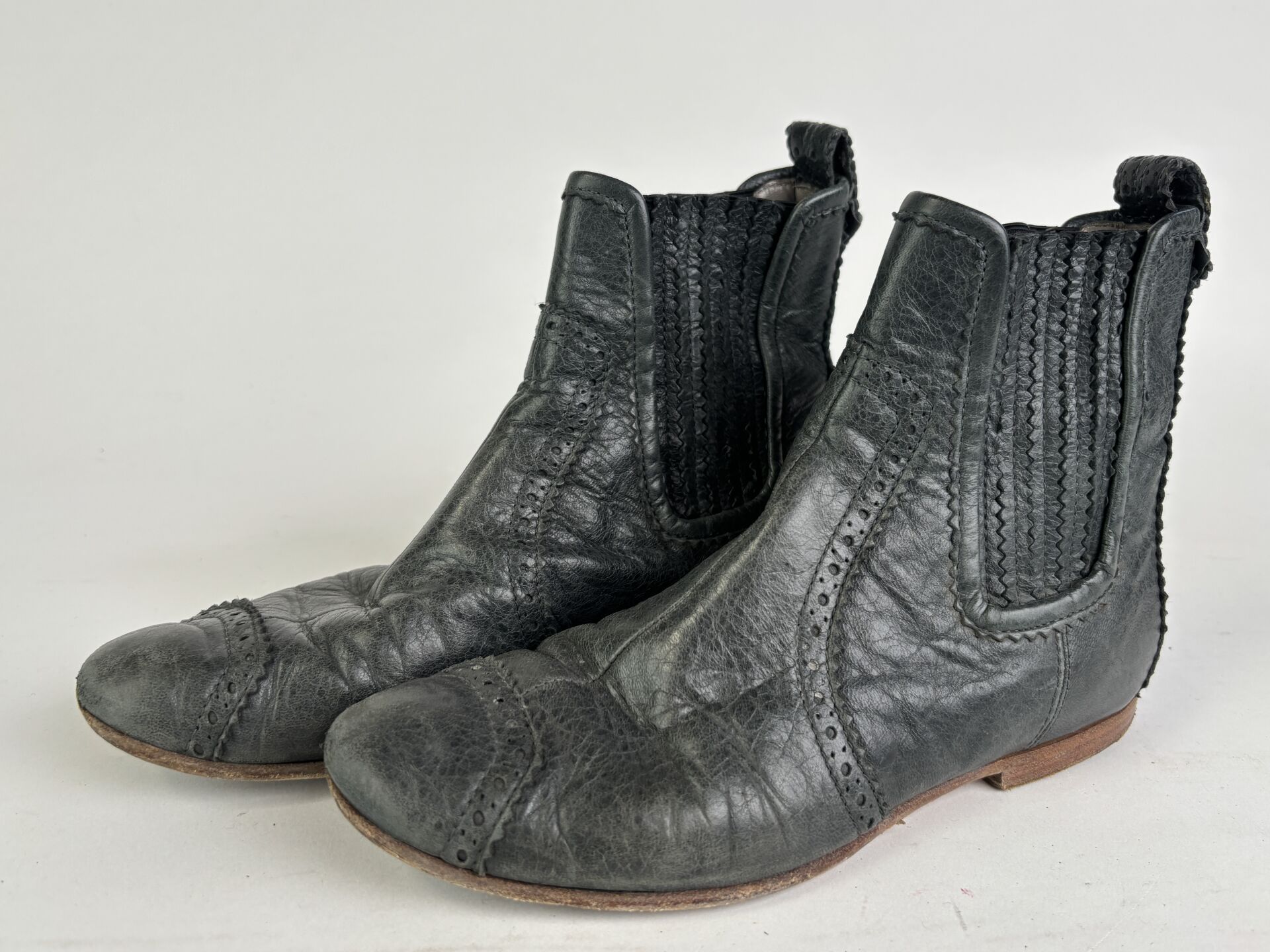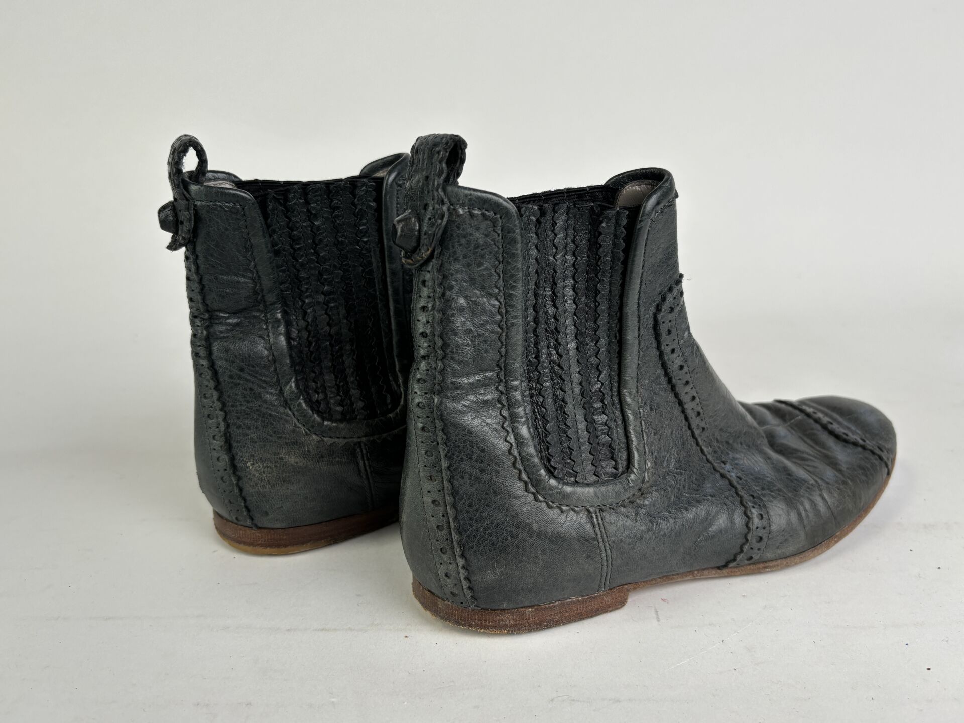 BALENCIAGA - Paire de boots, cuir effet froissé vert sapin. Pointure 35 Etat d'usage