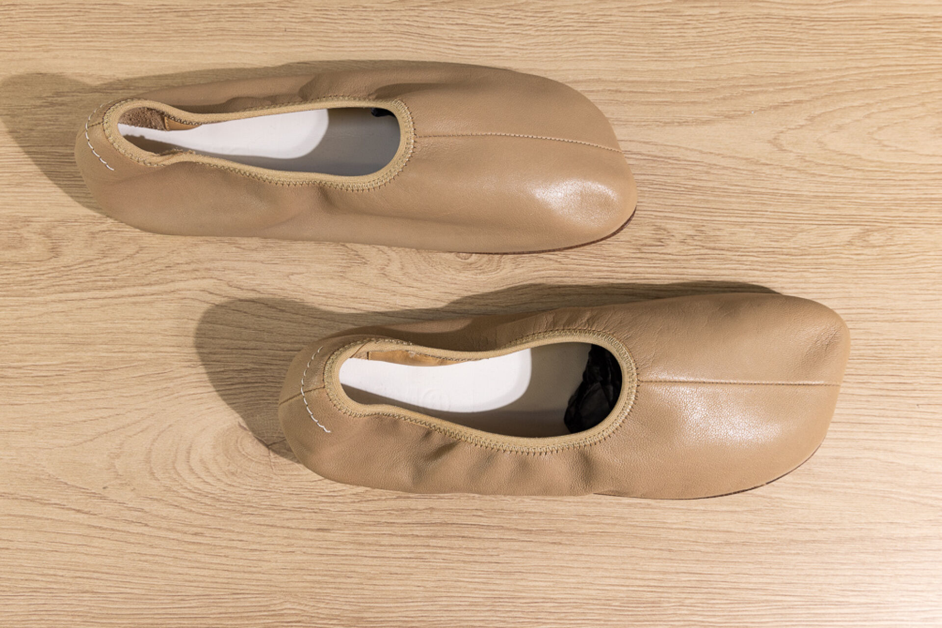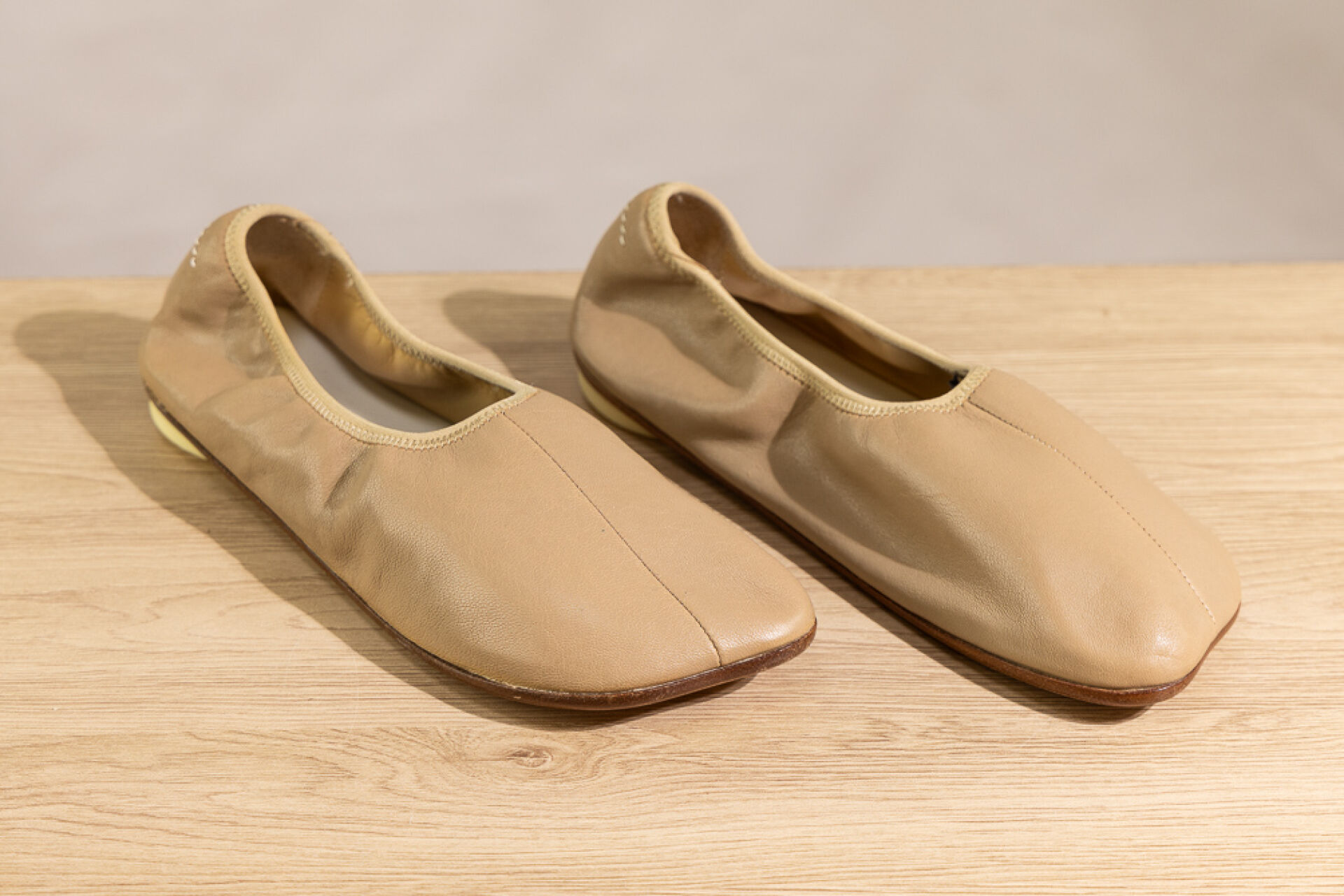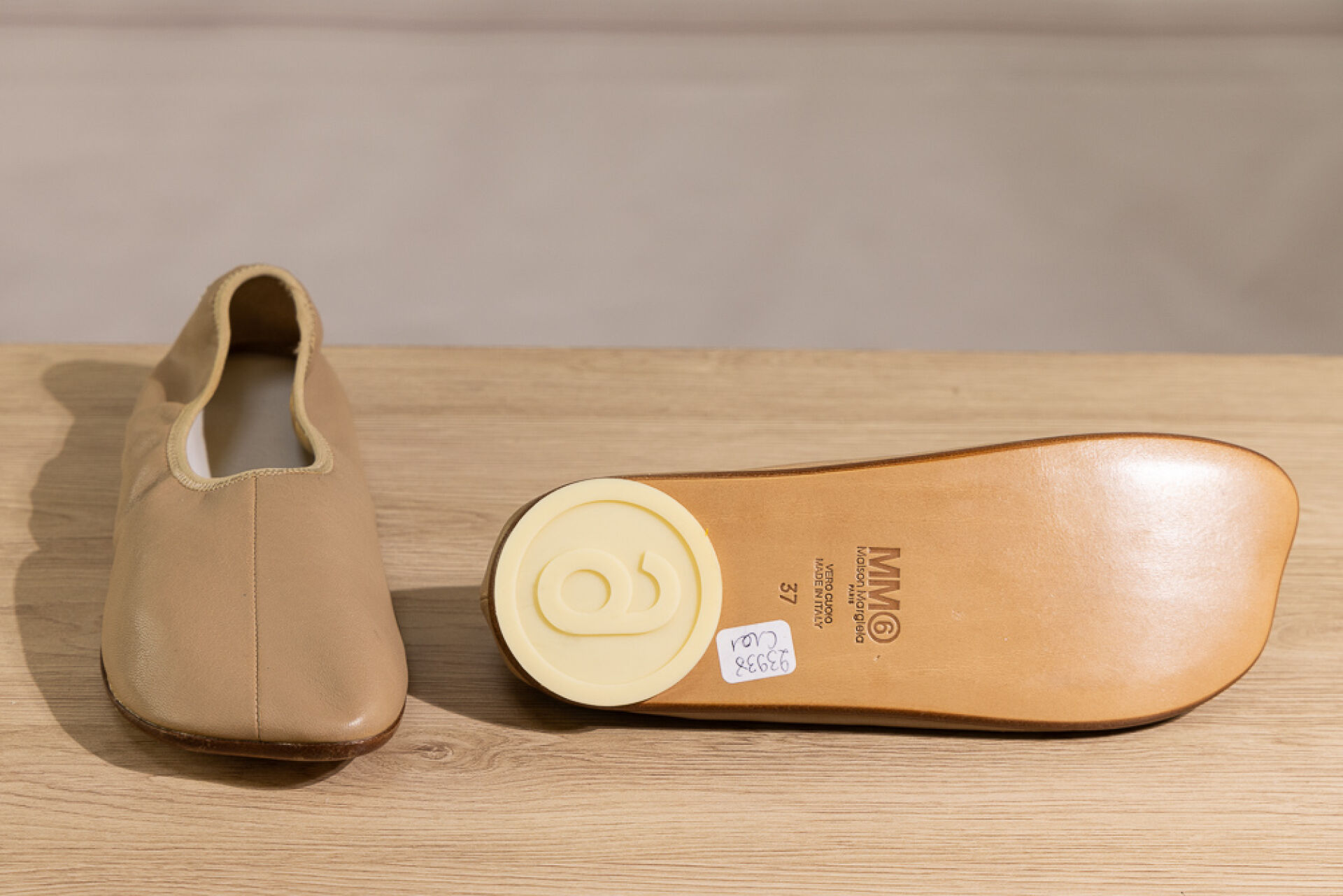 MAISON MARGIELA Ligne 6 - Paire de ballerines en cuir beige. Pointure 37 Non portée