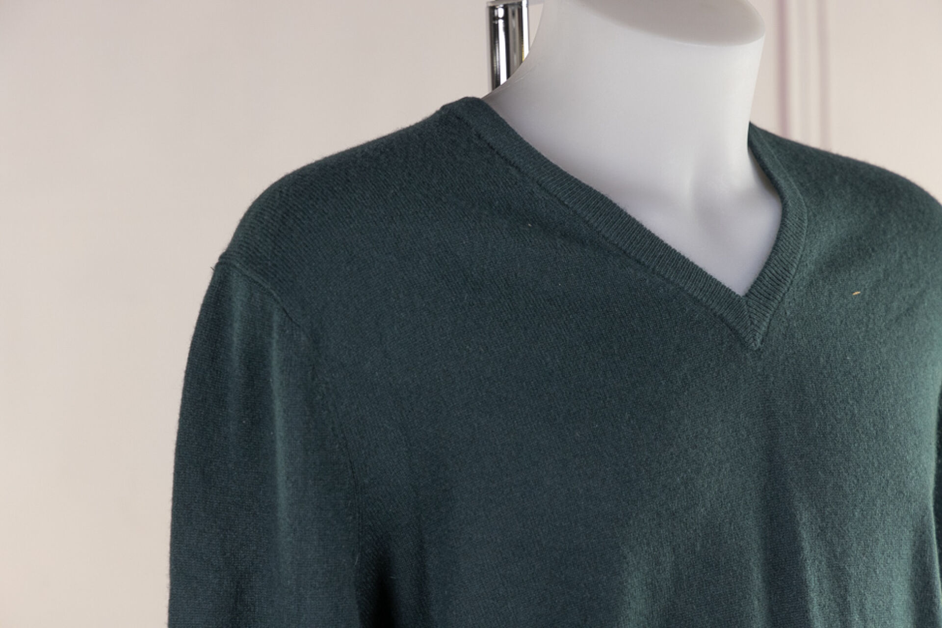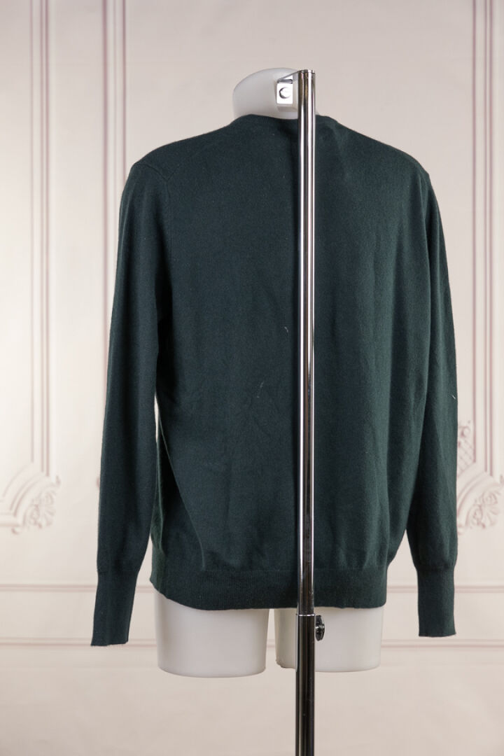 ERIC BOMPARD. Pull homme en cachemire vert Zurich, encolure V, manches longues. Taille XL. Non porté, étiquette d'origine.