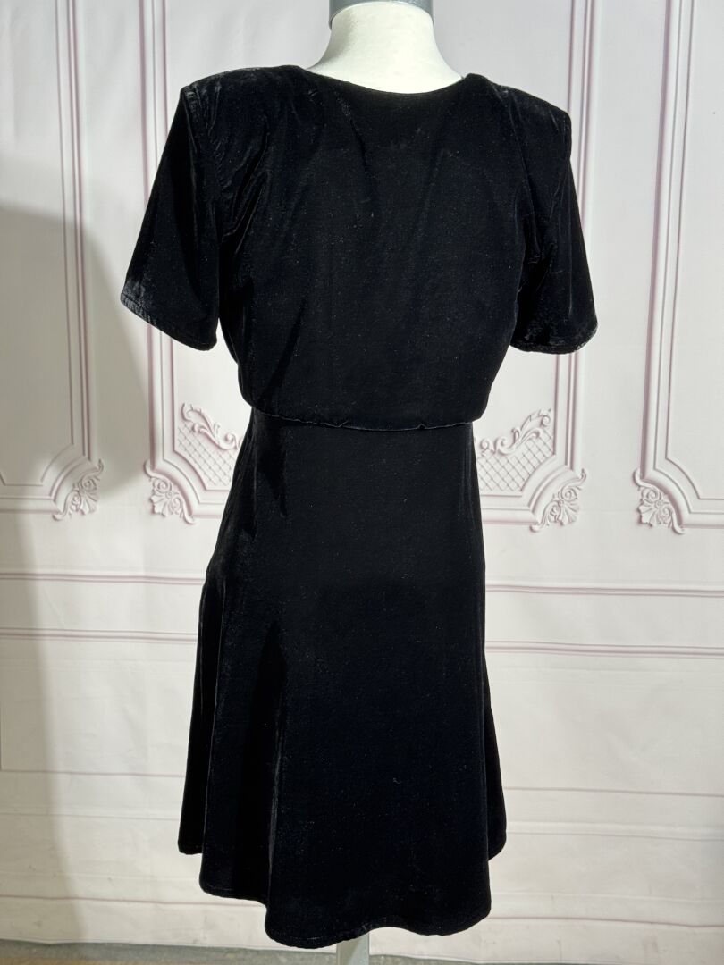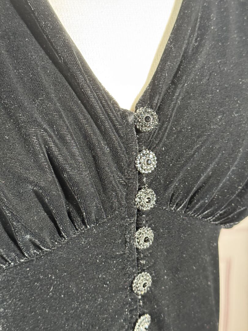 THE KOOPLE - Robe courte, velours noir, encolure en V sur simple boutonnage, petites manches. Taille 1 Déjà portée, bon état