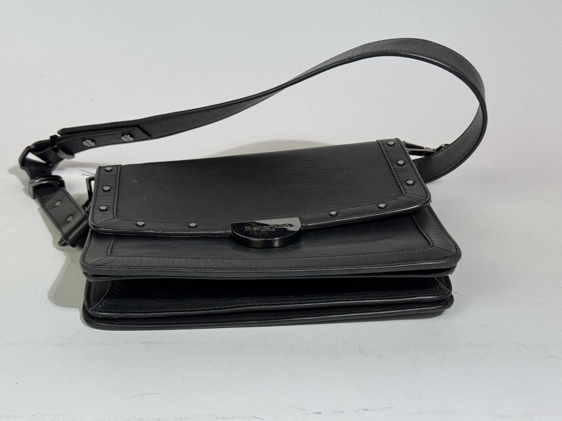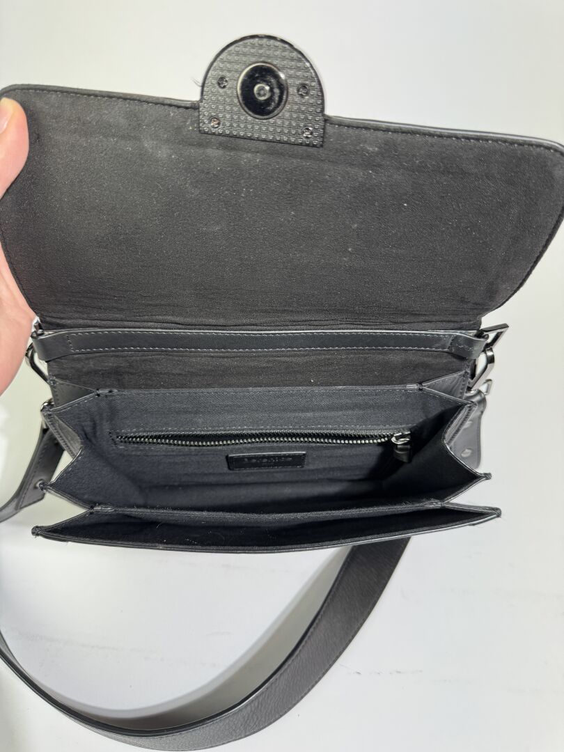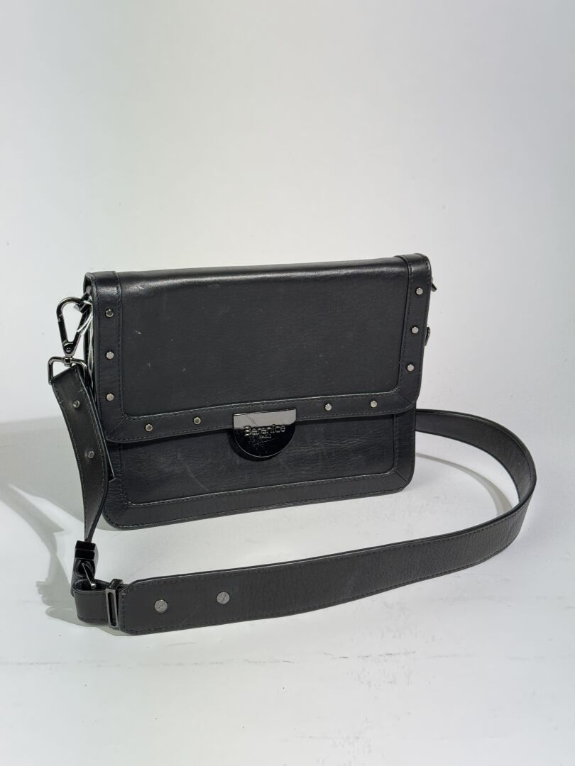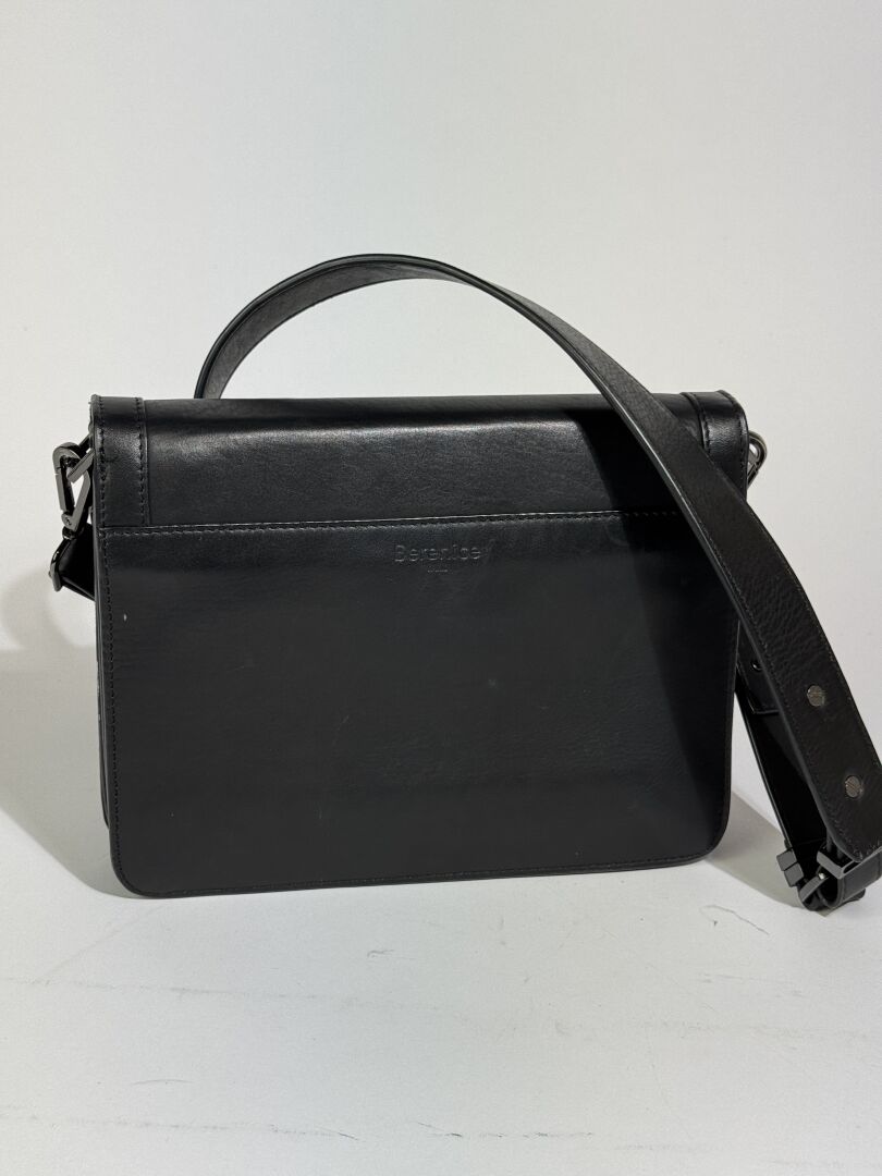 BERENICE - Sac à rabat en cuir agneau noir, fermoir aimanté, anse bandoulière à la couleur. Haut. : 18 cm - Long. : 24 cm Déjà porté, bon état général