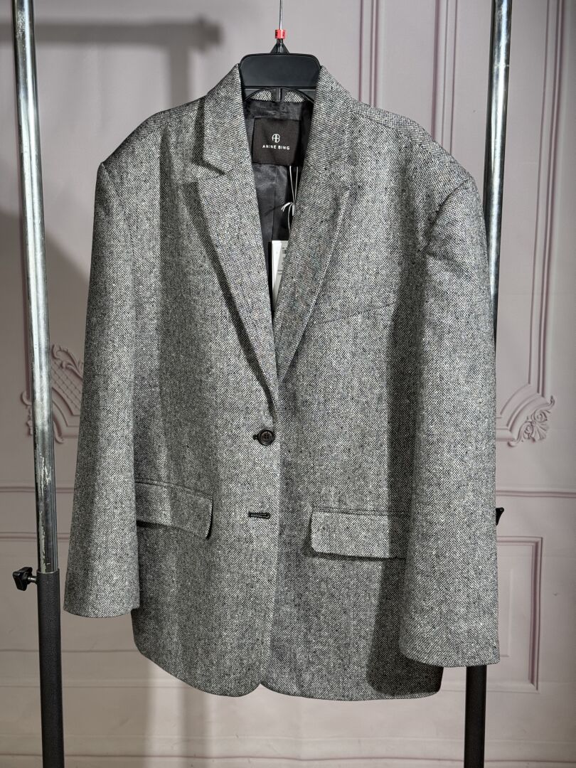 ANINE BING - Blazer effet tweed chiné gris, col cranté, simple boutonnage, deux poches sous rabat. Taille indiquée M Etat magasin