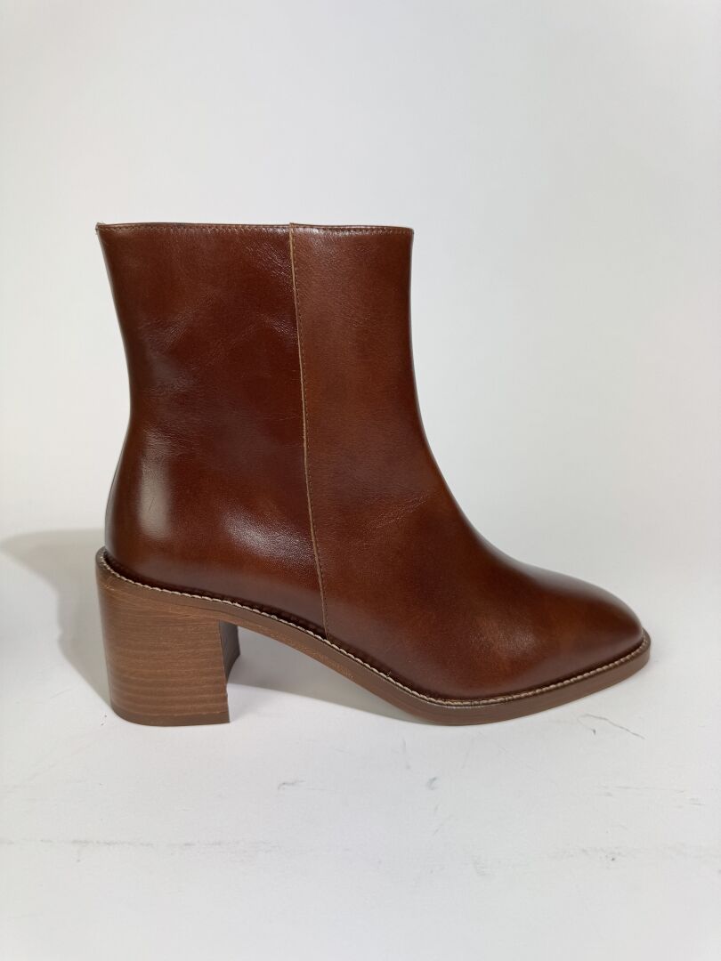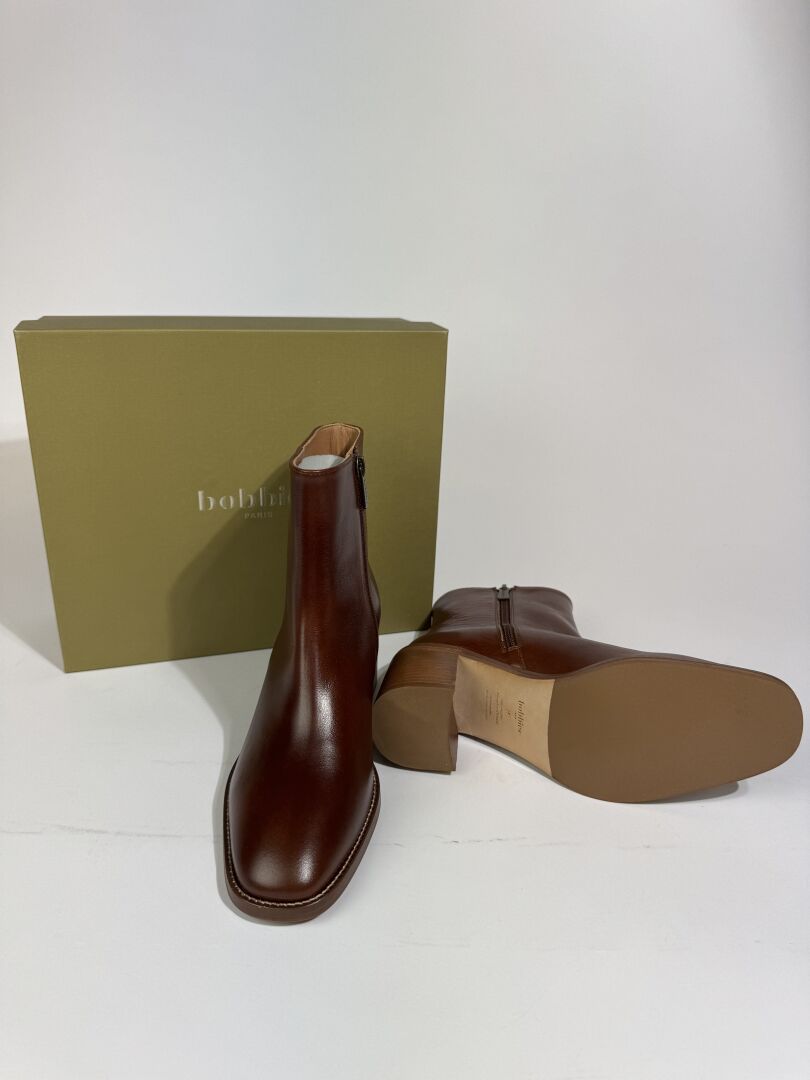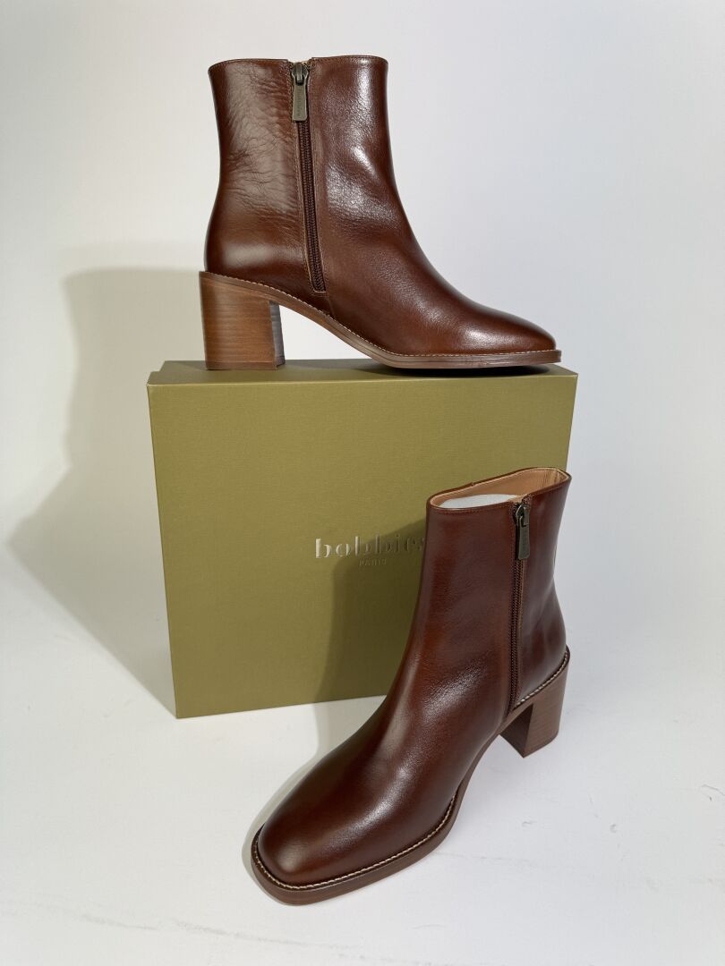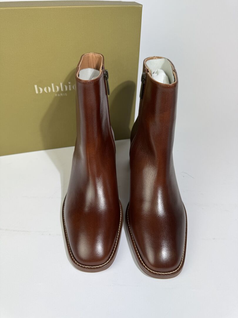 BOBBIES - Paire de bottines en cuir marron, fermeture à glissière latérale, talon. Boite. Pointure 38 - Haut du talon : 6,5 cm Etat magasin