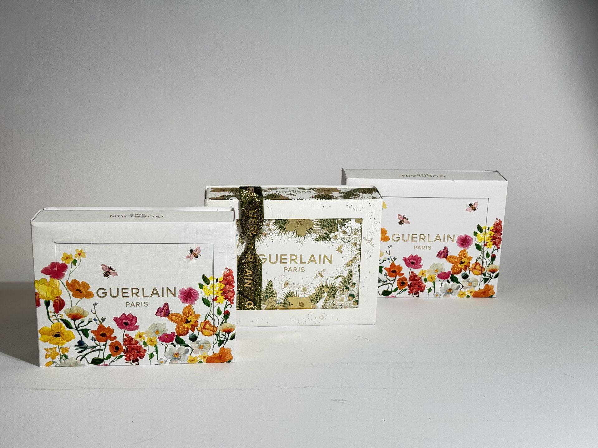 GUERLAIN - Trois coffrets : - "Mon Guerlain" eau de parfum 50 ml et 5 ml et un lait parfumé pour le corps 75 ml ; - "Shalimar" eau de parum 50 ml et 5 ml et un lait divin pour le corps 75 ml ; - "La Petite Robe Noire" eau de toilette 50 ml et 5 ml et un lait pour le corps 75 ml.