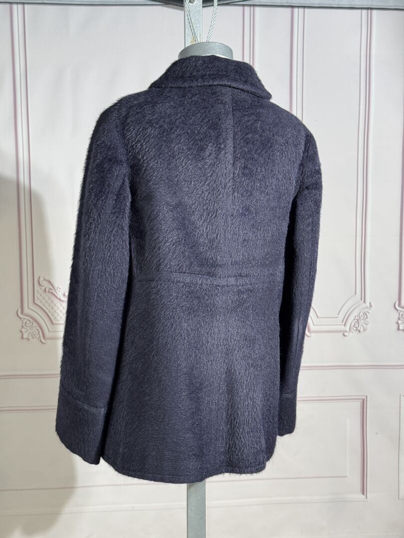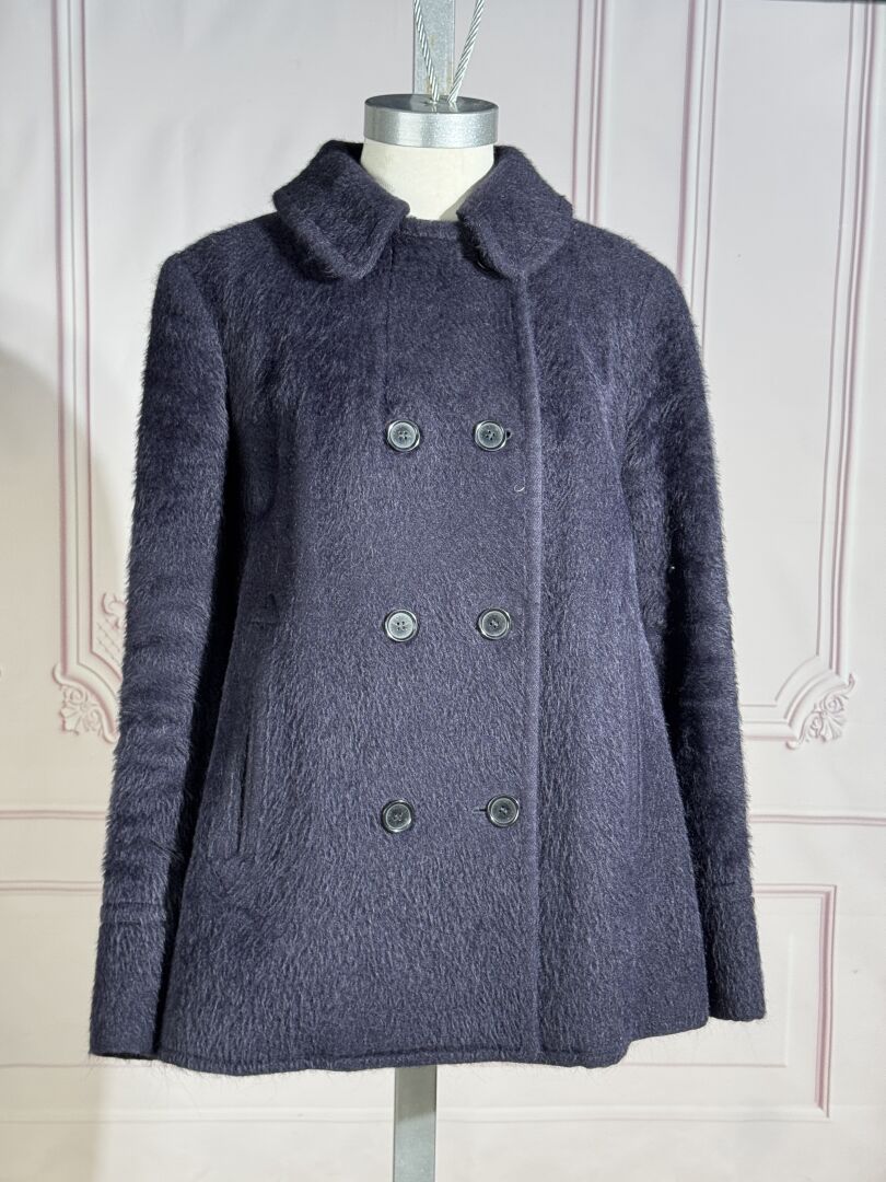 MARC JACOBS - Manteau court, alpaga et laine marine, effet double boutonnage, col cranté, manches longues, deux poches en biais. Taille indiquée M Très bon état, déjà porté