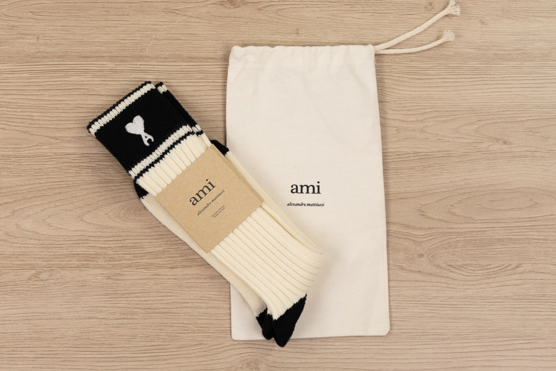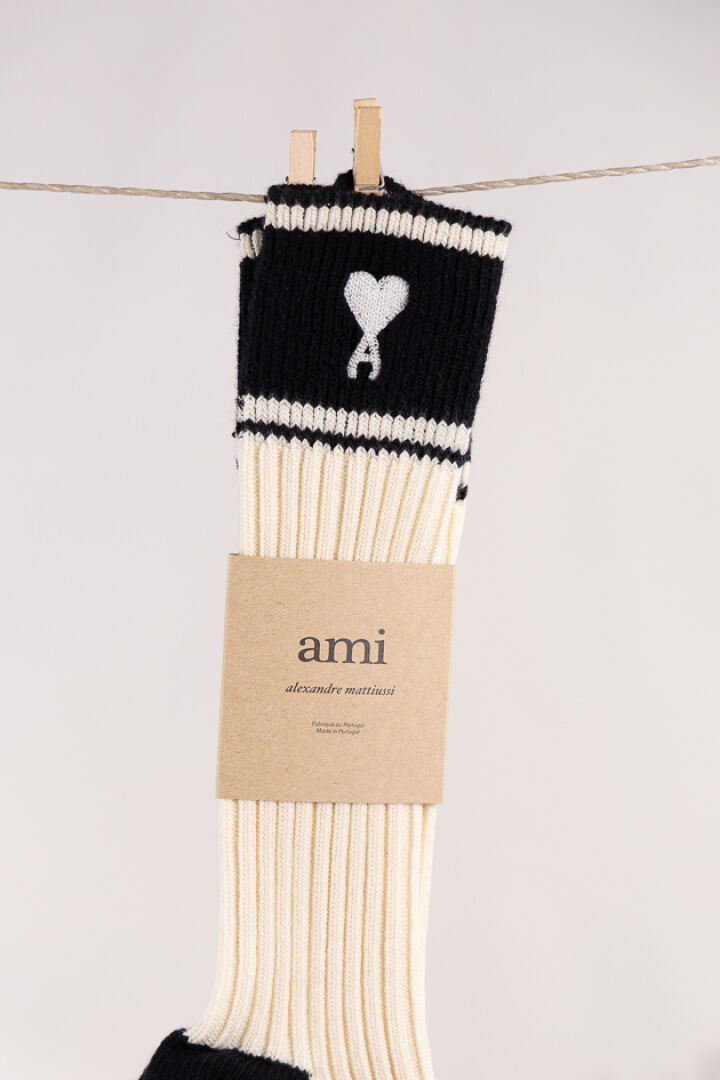 AMI par ALEX MATTUISSI - Paire de chaussettes en coton cottelé écru et noir. Pointure supposée 35-38 Non portées - Housse