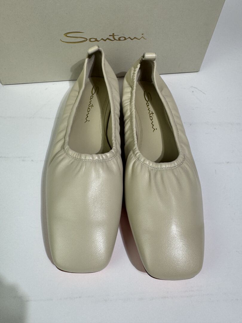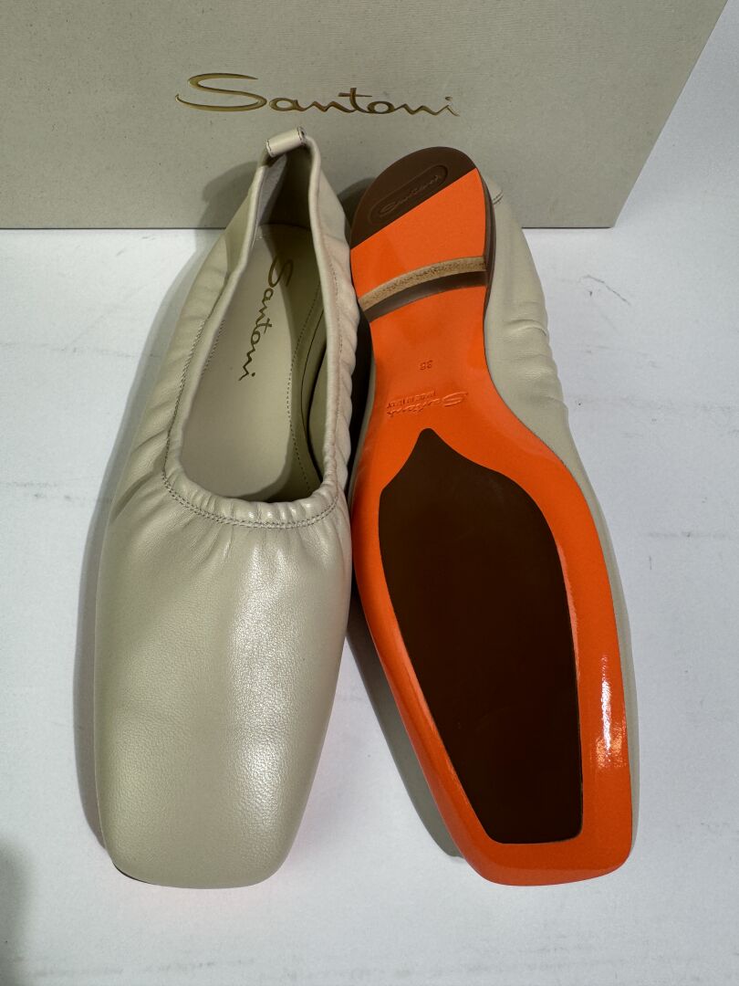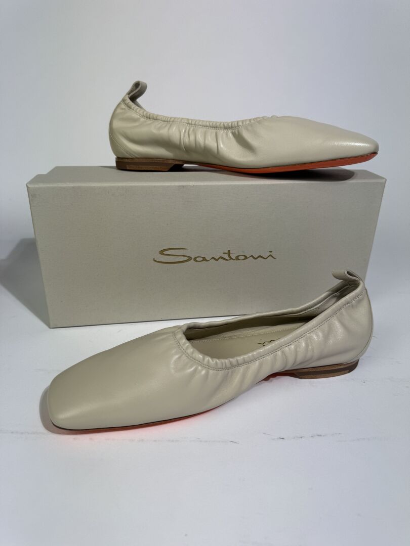 SANTONI - Paire de souliers en cuir beige. Boite. Pointure 38 Etat magasin