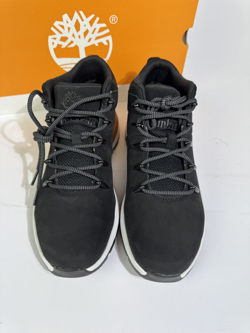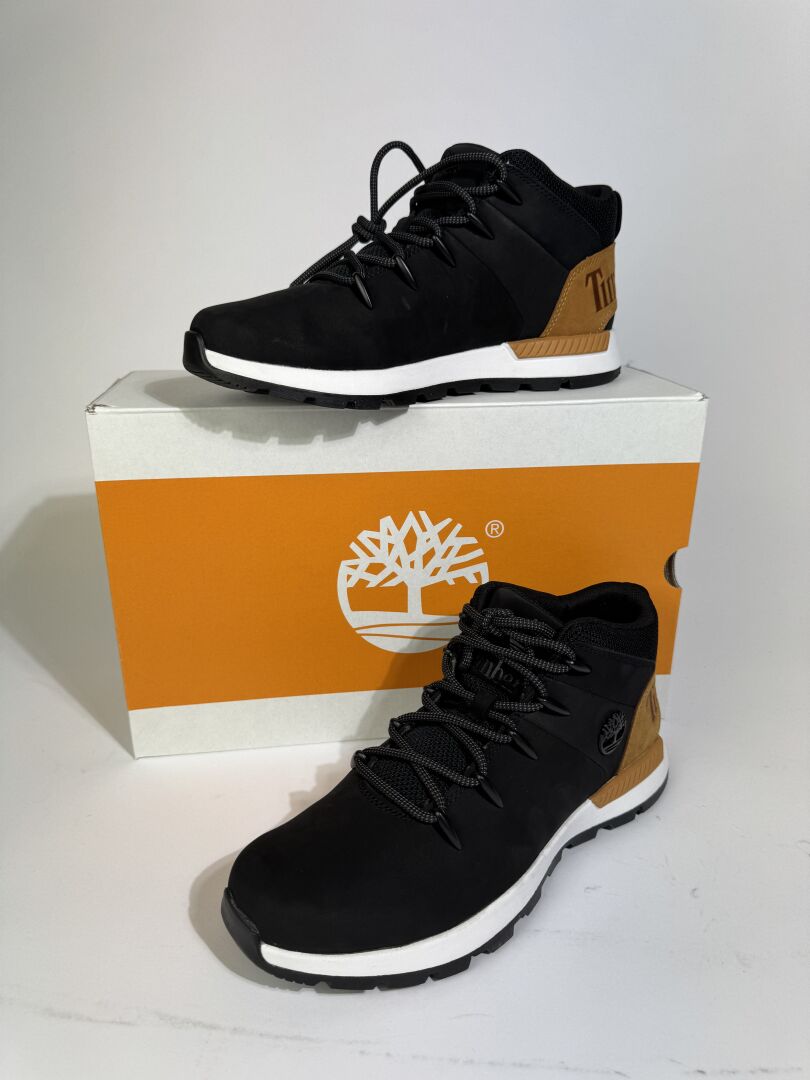 TIMBERLAND - Paire de chaussures homme en cuir noir et camel, lacets. Boite. Pointure 8,5 (soit 42 français) Etat magasin