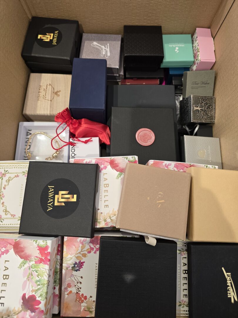Fort ensemble d'environ 90 Bijoux fantaisie comprenant bracelets, bagues, boucles d'oreilles, colliers, pendentifs ... Diverses marques dont : LIU-JO, LA BELLE PARISIENNE, AGAPEE, JAWAYA, GAS,… On joint 2 plateaux comprenant chacun 48 bagues. En l'état, la majorité dans leur écrin