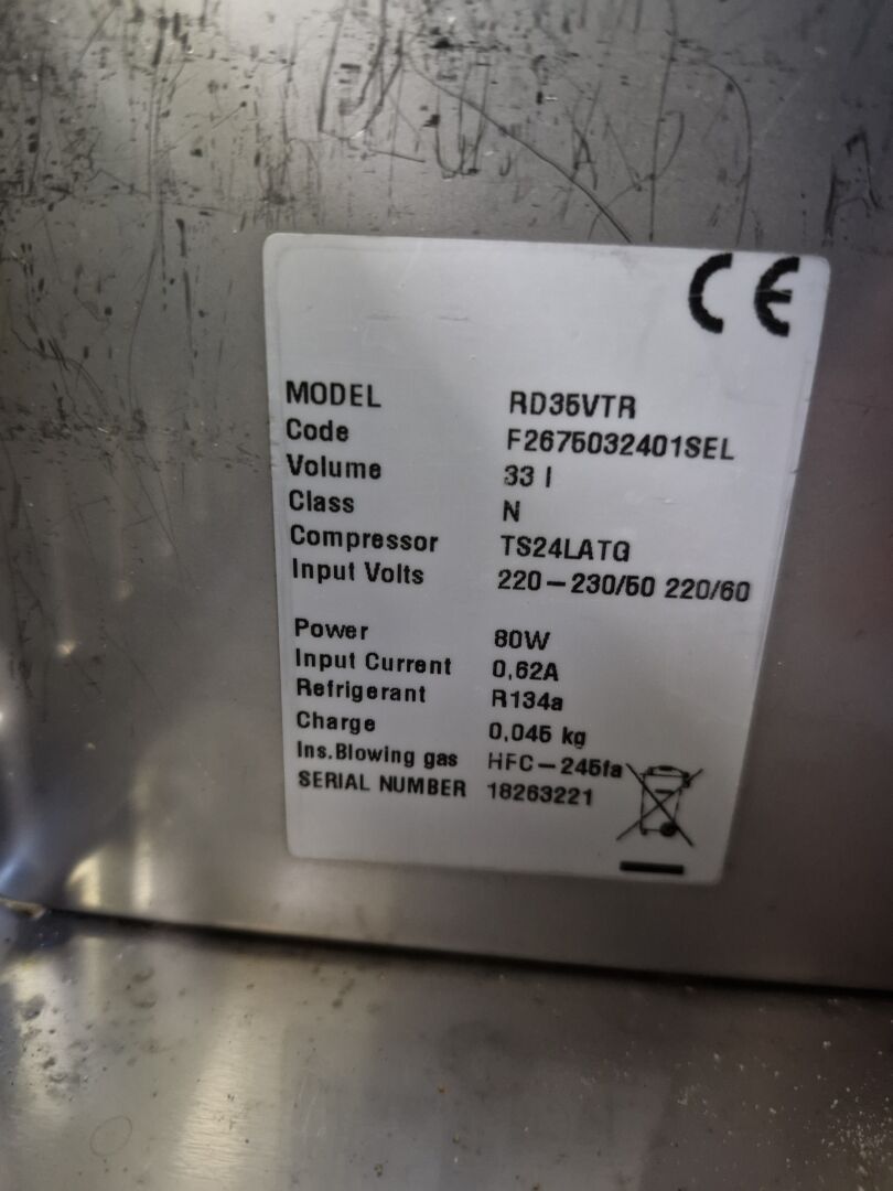 Vendu sur désignation le 14 10 2025 à NANTES, visible 24 rue du marché commun à NANTES : 1 tour réfrigéré mobile ZANUSSI modèle PNC 0000 9F650005C en inox avec 2 tiroirs, triphasé (manque une vitre coté gauche)