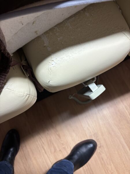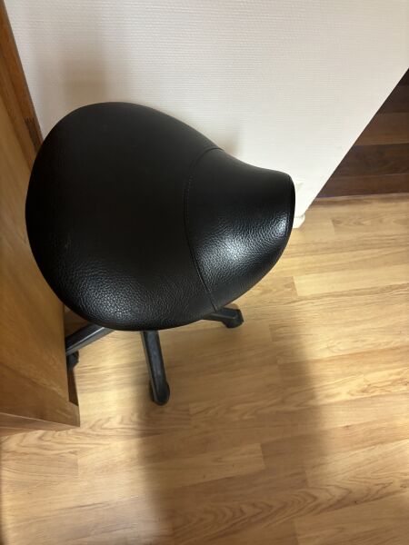 Table de massage électrique en simili cuir, mauvais état On joint : Tabouret roulant assise en simili cuir noir