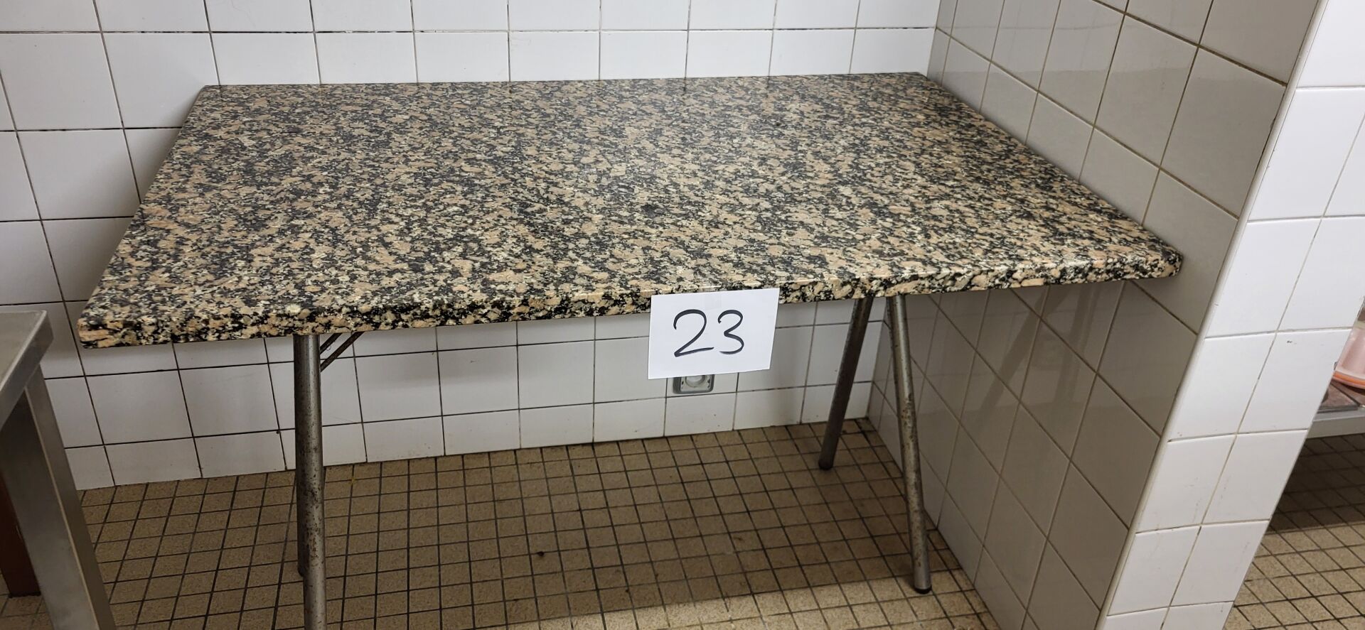 1 table bois (68 x 60cm) 1 table pliante plateau granit