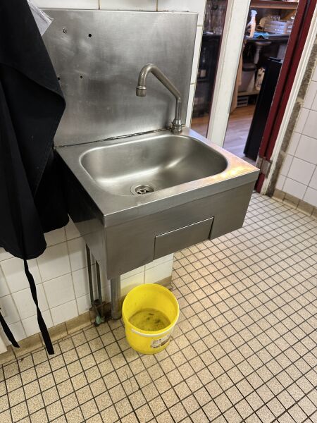 1 lave-mains inox avec crédence, à commande genou 1 grande poubelle plastique à pédale A DEMONTER PROPREMENT SANS DOMMAGE A L'IMMEUBLE ET EN RESPECTANT L'ETANCHEITE DU BATIMENT. PREVOIR BOUCHON.