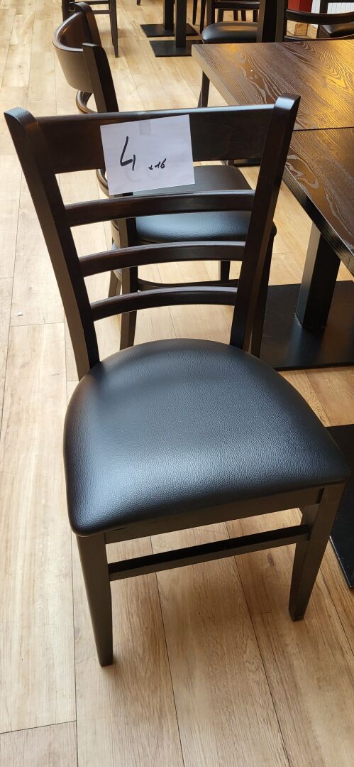 16 chaises bois assise similicuir noir