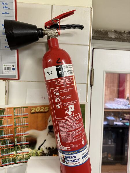 1 extincteur 2KG dioxyde de carbone, 1 extincteur 6L eau pulvérisée avec additif NON CONTROLES